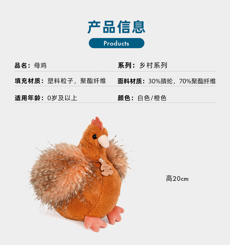DOUDOU 橙色白色母鸡-20cm玩偶