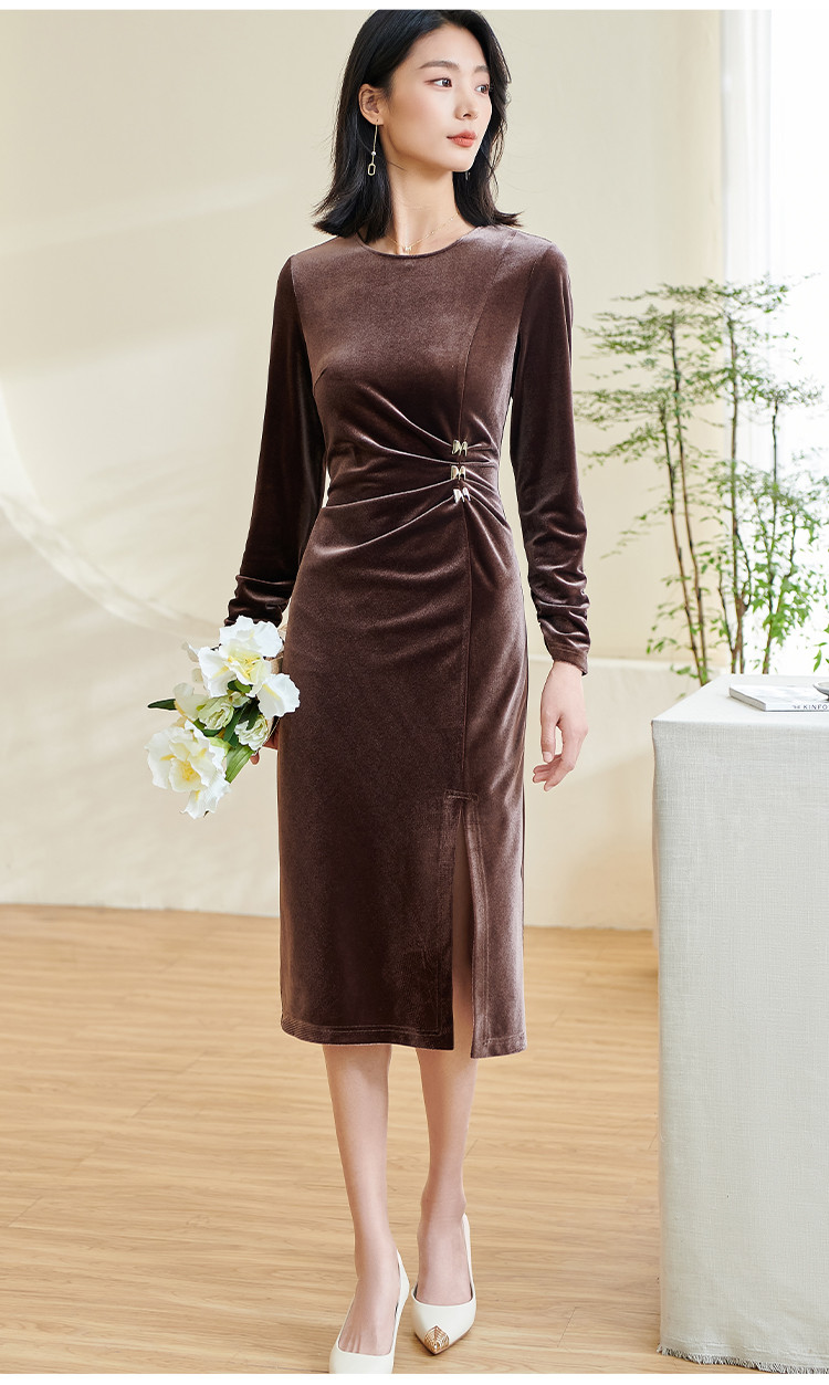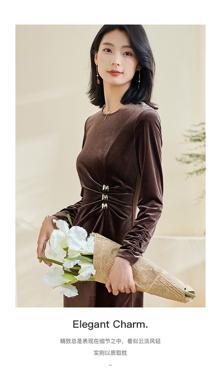 米思阳【丝绒包臀年会裙】2025春季新款时尚气质知性修身显瘦连衣裙