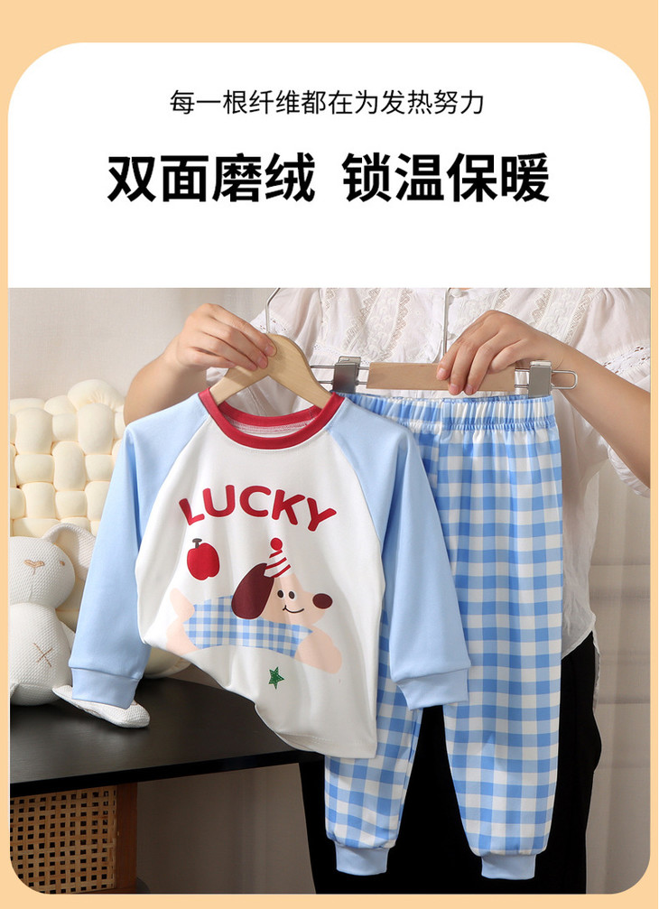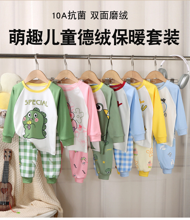 秋季新款睡衣儿童德绒印花卡通男女童家居服长袖10A抗菌休闲套装