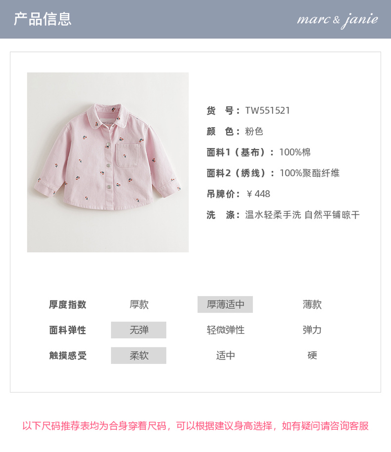 马克珍妮女童清新碎花软牛仔外套 宝宝夹克2025年秋装新品551521