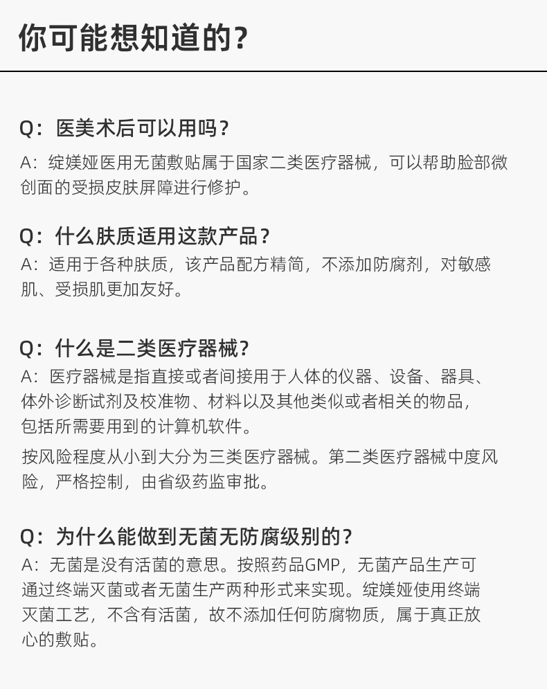 绽媄娅医用护肤品适用于激光、光子嫩肤、果酸活肤术后,以及轻度日晒伤、皮炎、湿疹、敏感性皮肤、激素依赖性皮炎等屏障受损皮肤的保护与护理。