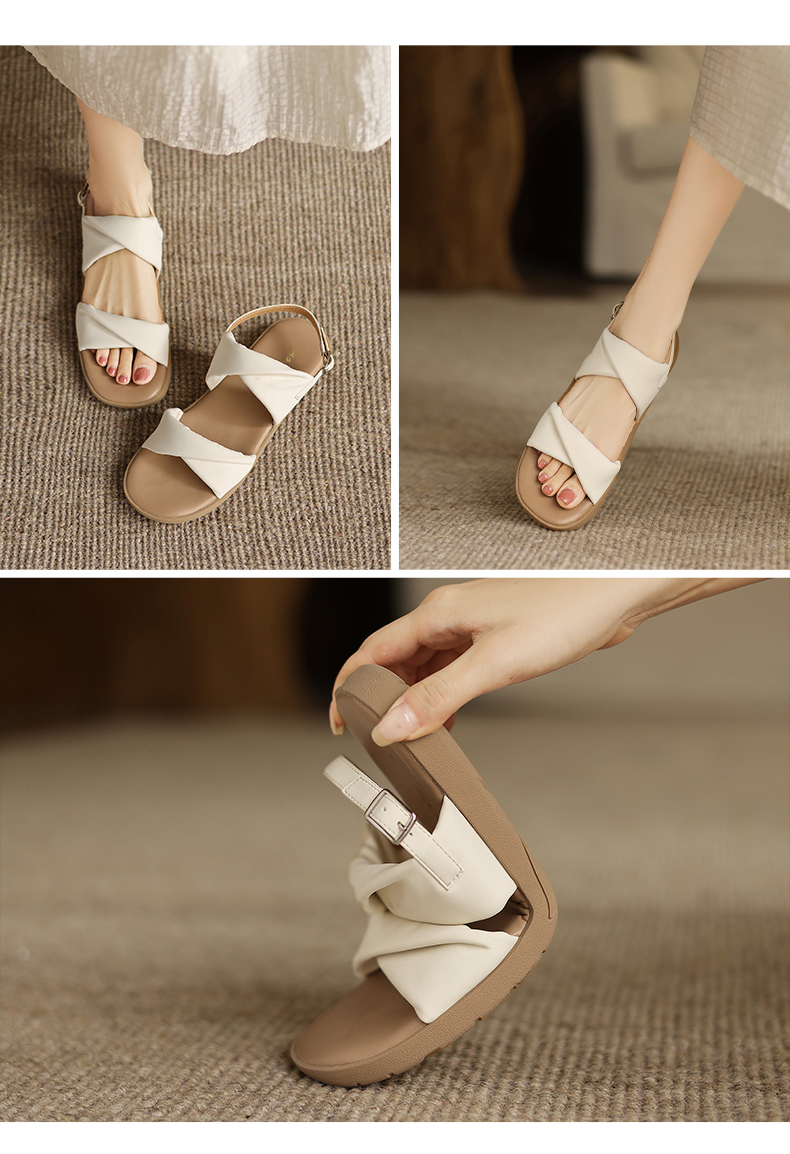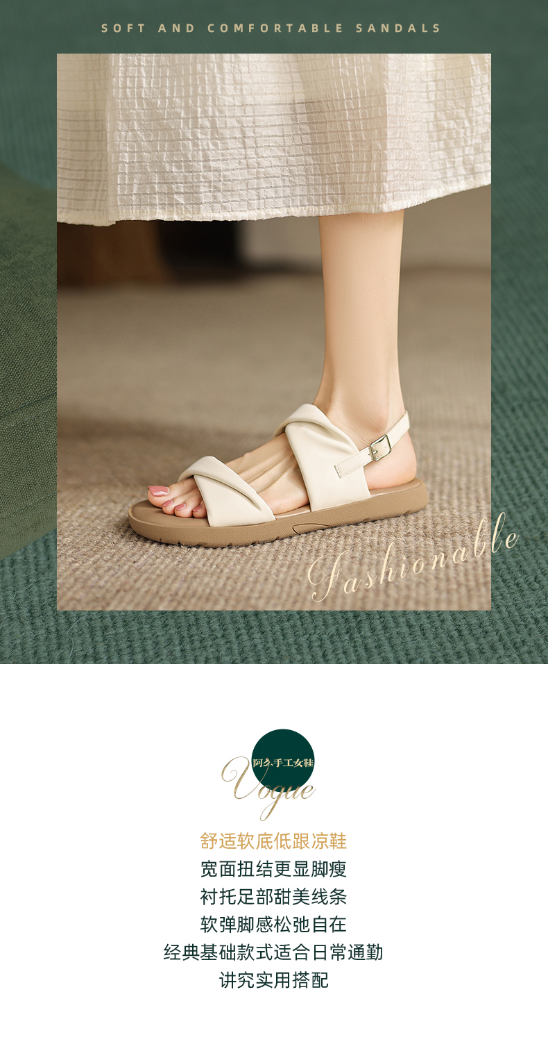 阿么手工女鞋超软休闲厚底凉鞋2025新款夏季百搭舒适软底鞋子2CM