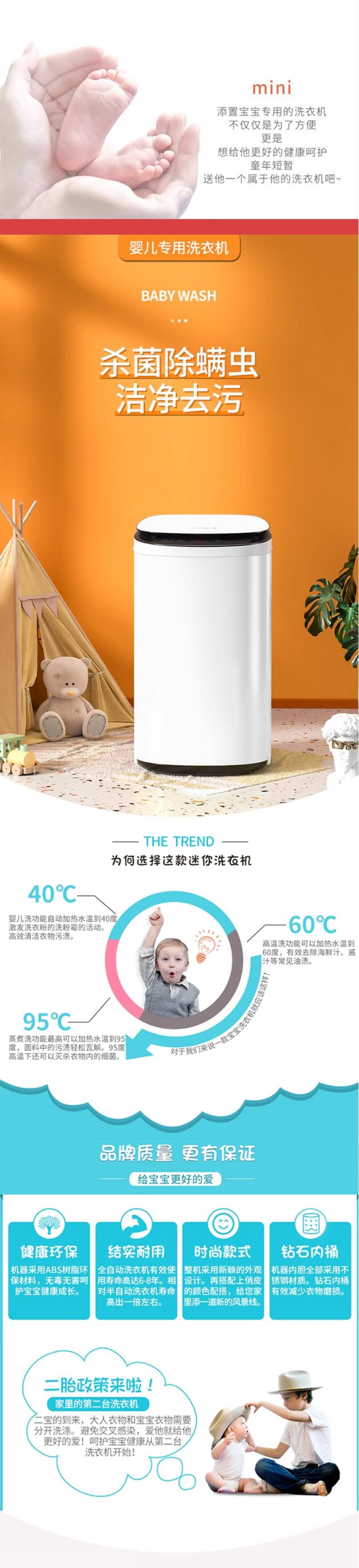 智洁小黄鸭(252158)智洁小黄鸭4.5KG婴儿全自动洗衣机高温杀菌洗烘一体迷你型家用 XQB30-688