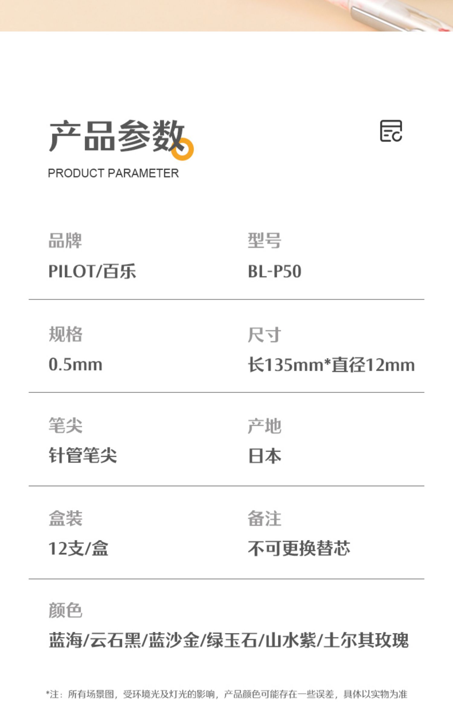 百乐p500金标限定中性笔