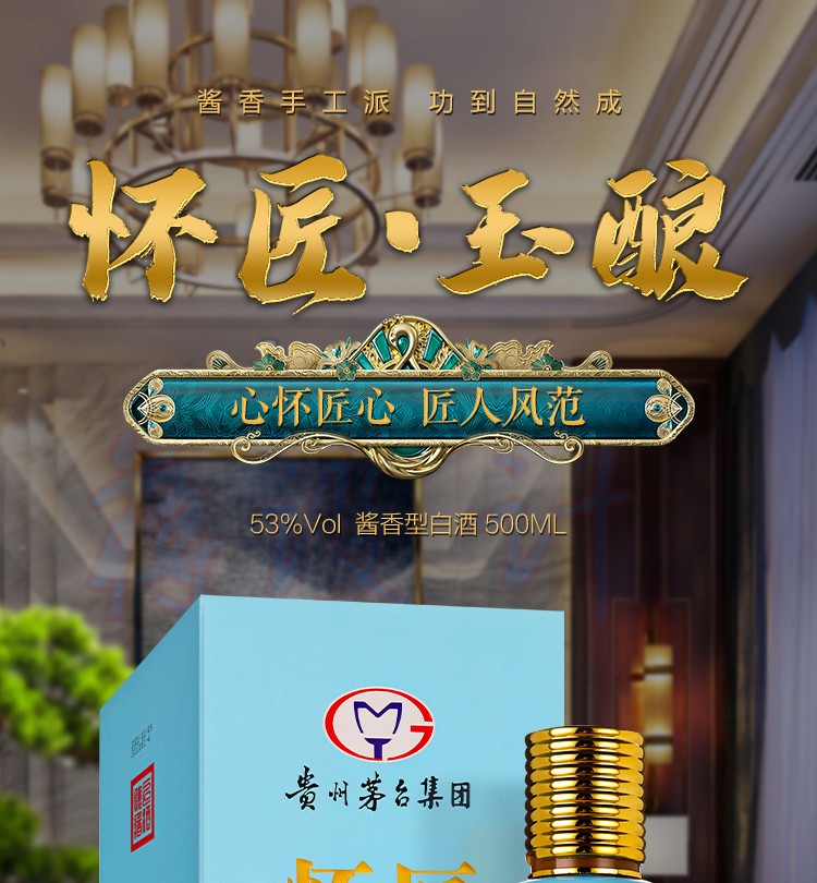 茅台贵州怀匠玉酿53度酱香型白酒 500ml *1瓶/2瓶/6瓶