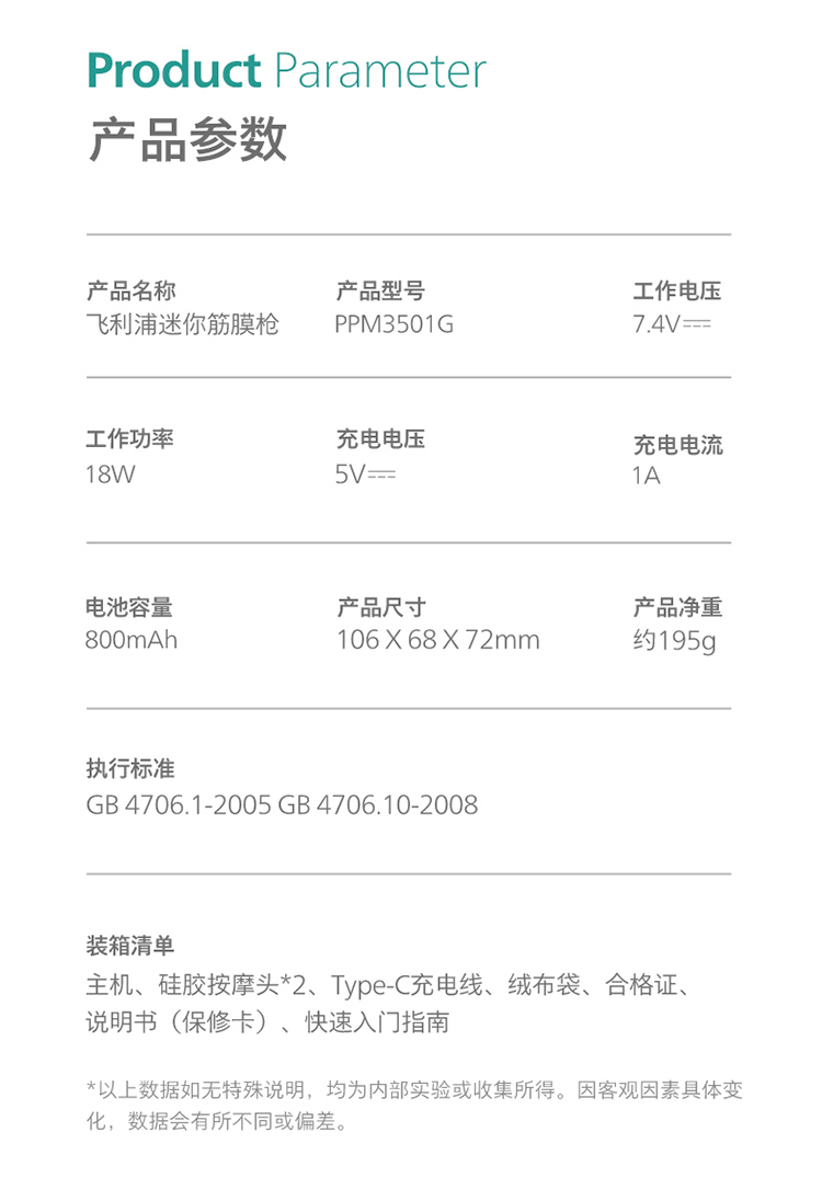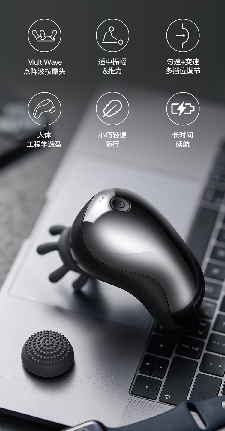 飞利浦筋膜枪按摩器迷你专业级 mini筋膜枪+定制硅胶按摩头PPM3501G