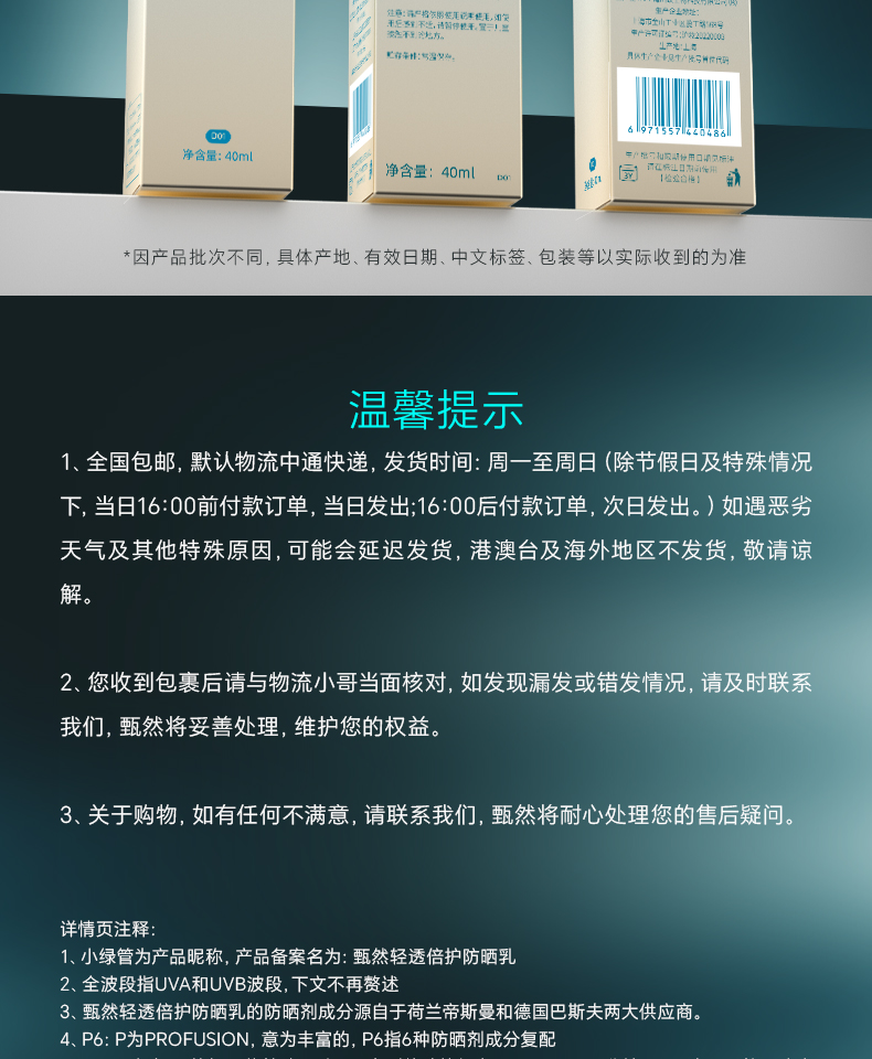sy甄然轻透倍护防晒乳40ml/支(买一送一)