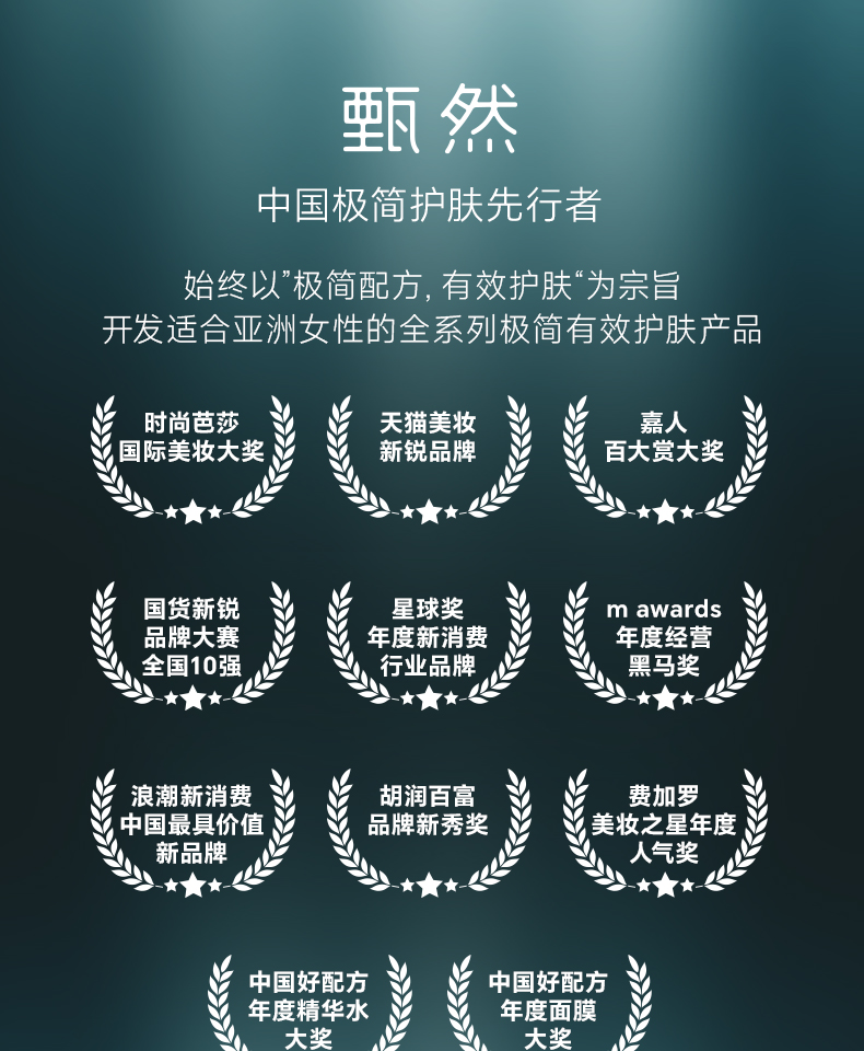 - 甄然倡导简单(simple)、健康(health)、自然(nature)理念的护肤品牌,用心甄选有效成分,通过极简配方与设计,回归肌肤本源之美。