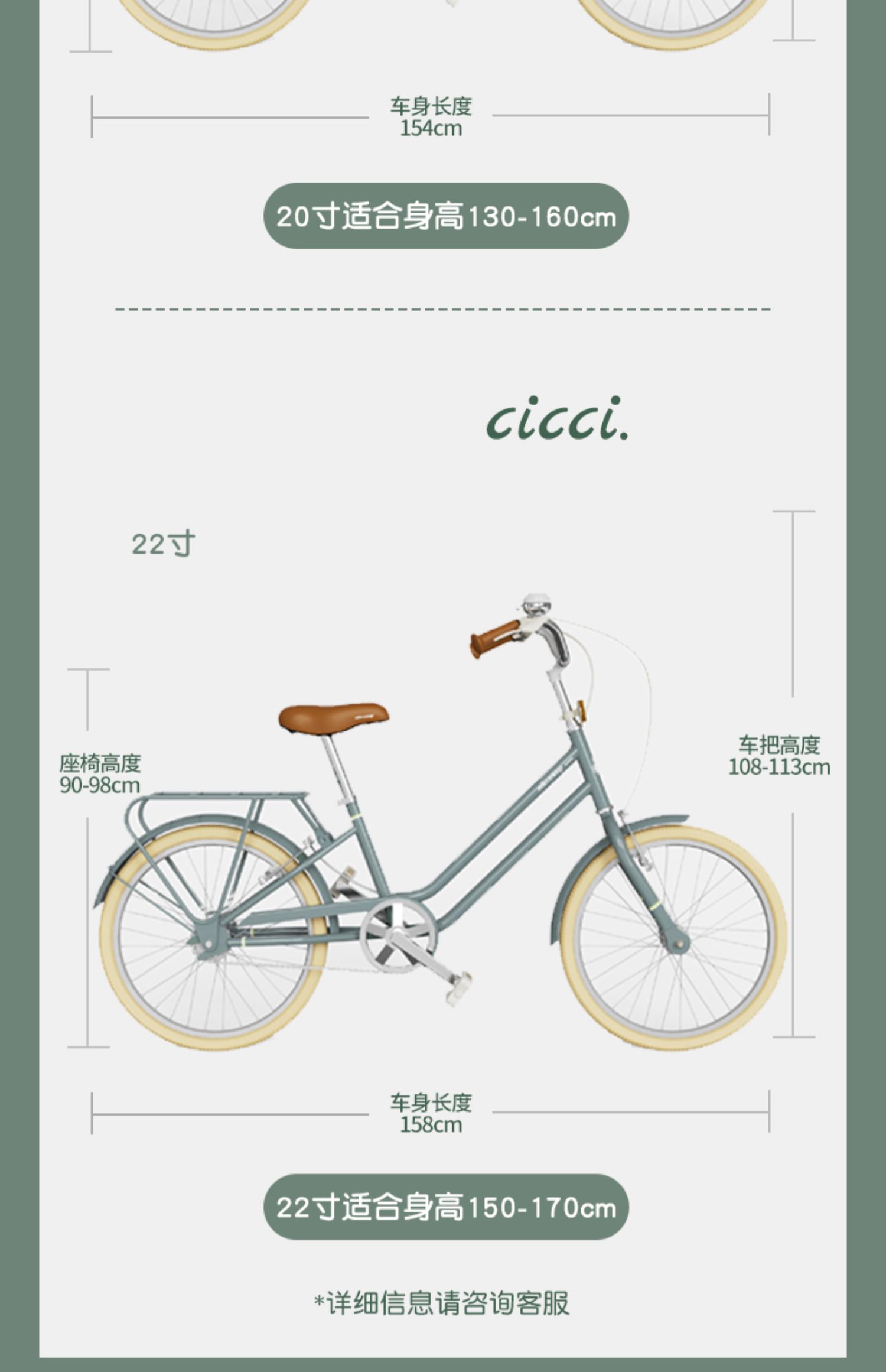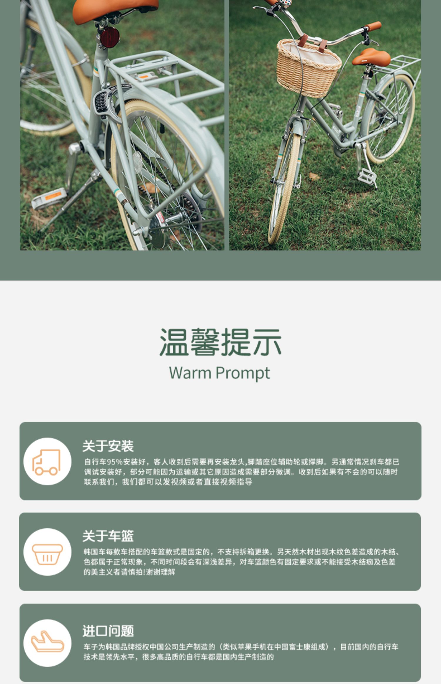 Mon Tresor 成人自行车女款女士女孩脚踏车20-22寸新款复古亲子单车