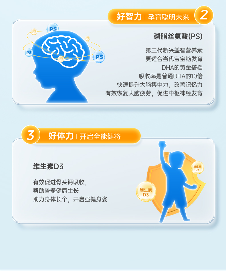【核心功能】儿童补眼补脑、提升免疫力、促进神经中枢发育,保护视力。