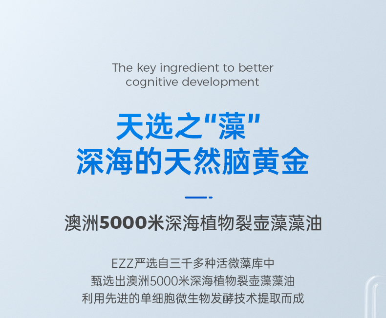 EZZ严选自三千多种活澡库中的5000米植物裂壶澡藻油,利用先进的单细胞
