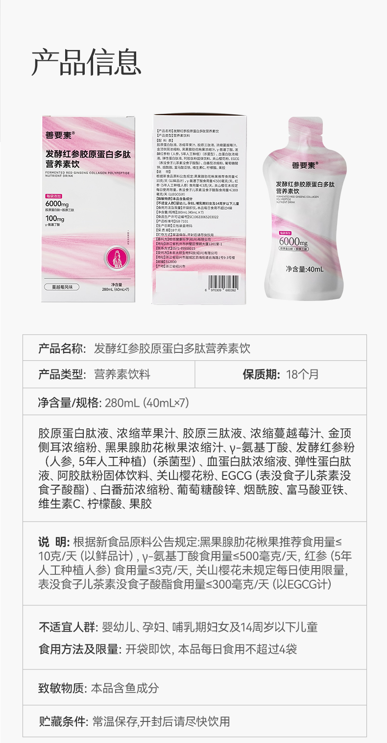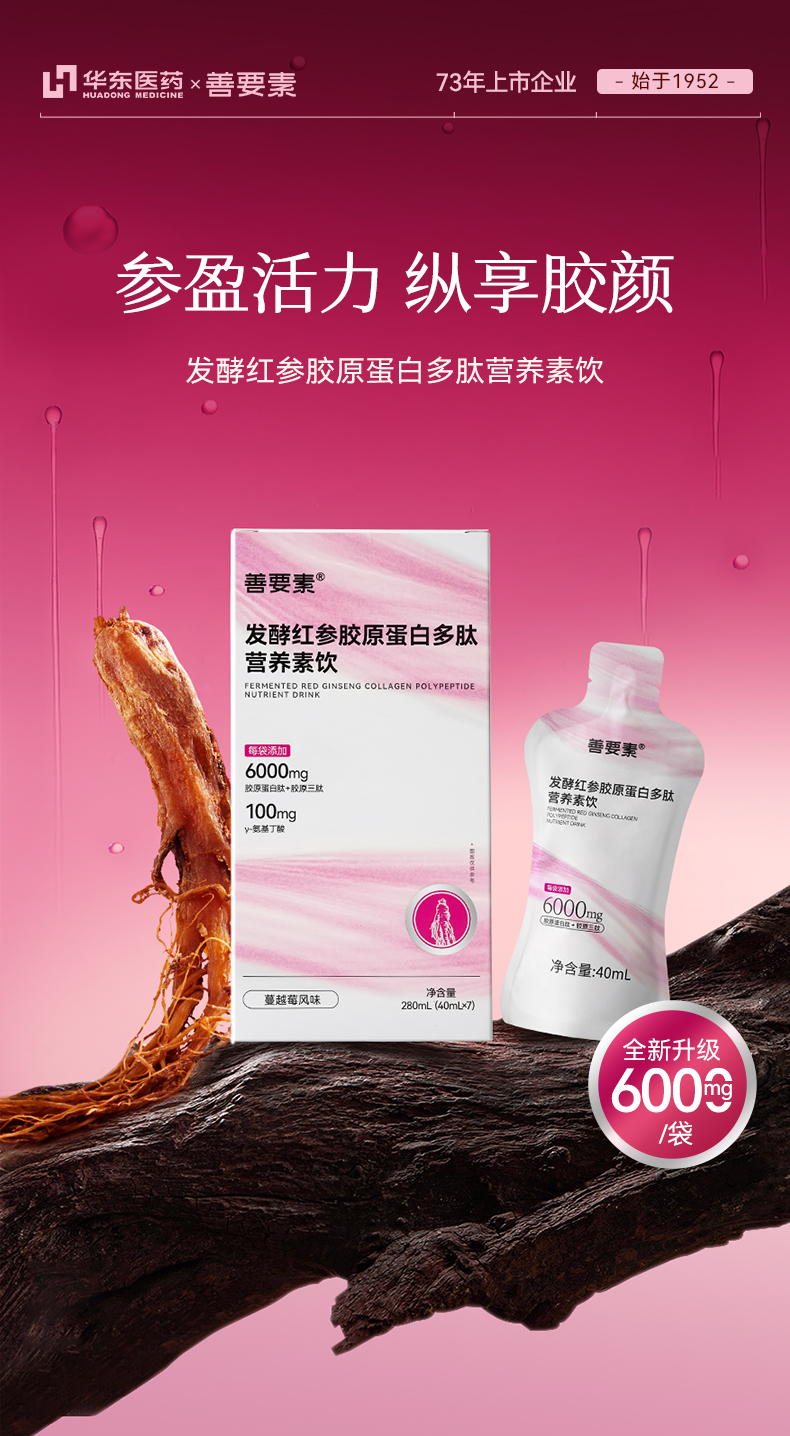 华东医 药善要素发酵红参胶原蛋白多肽小分子口服液