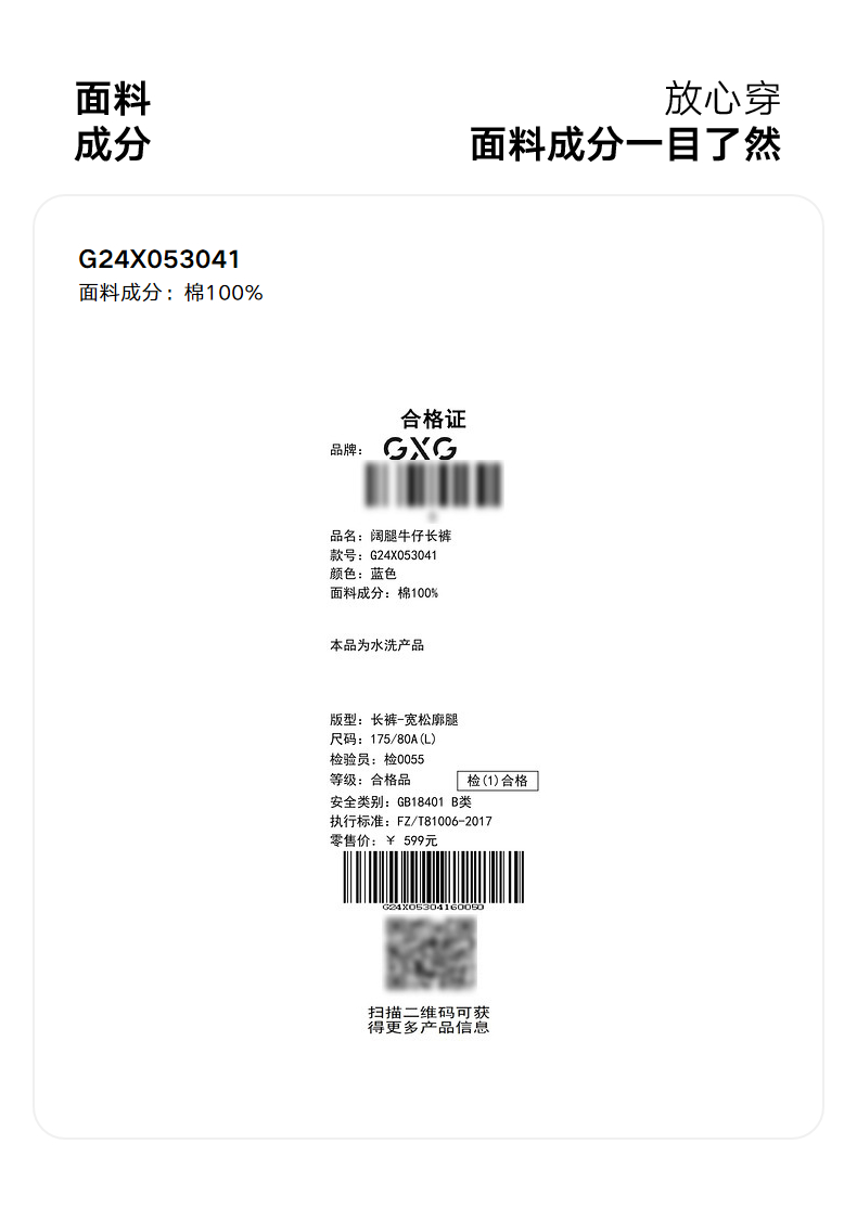 GXG男装 双色渐变牛仔裤宽松阔腿长裤 秋G24X053041