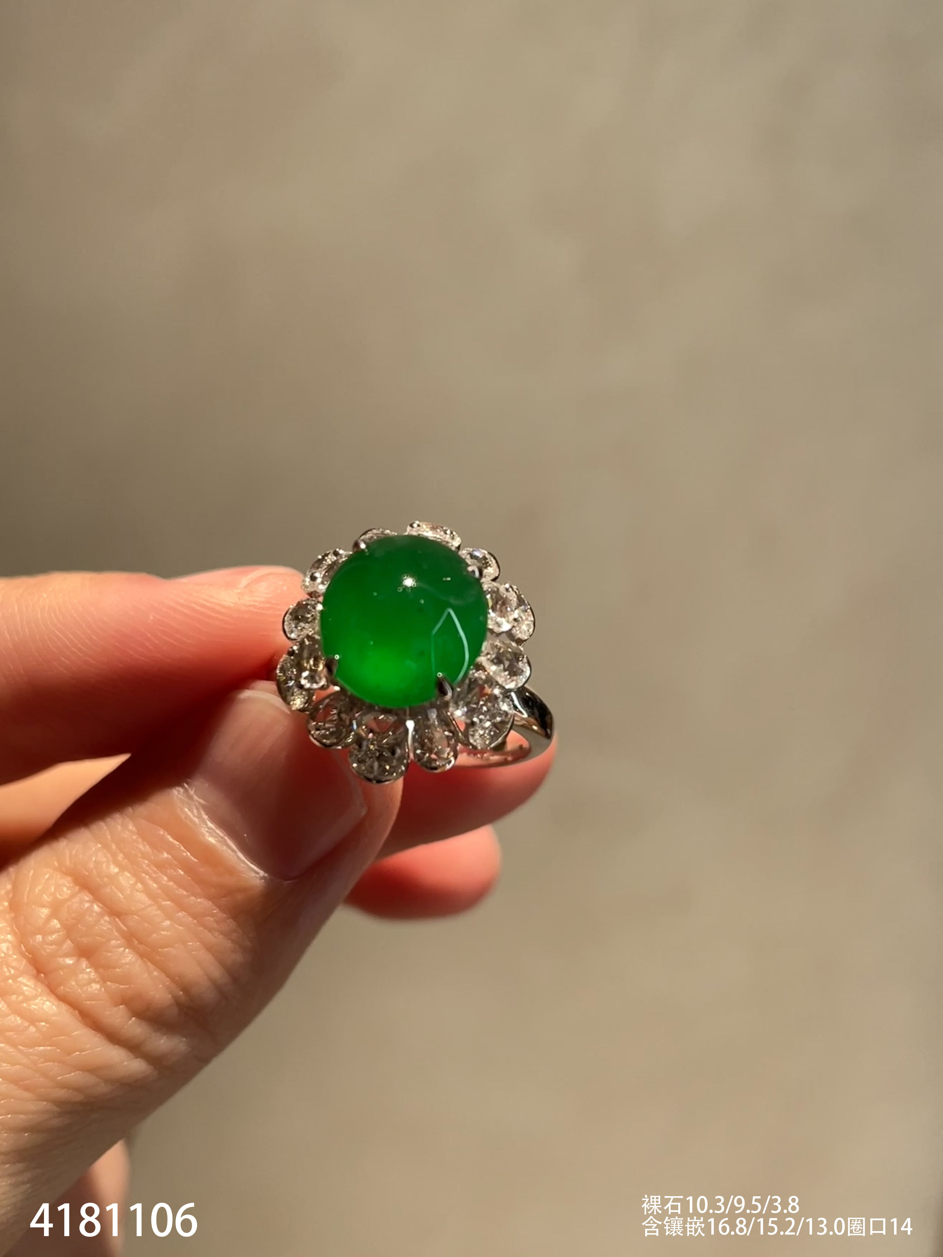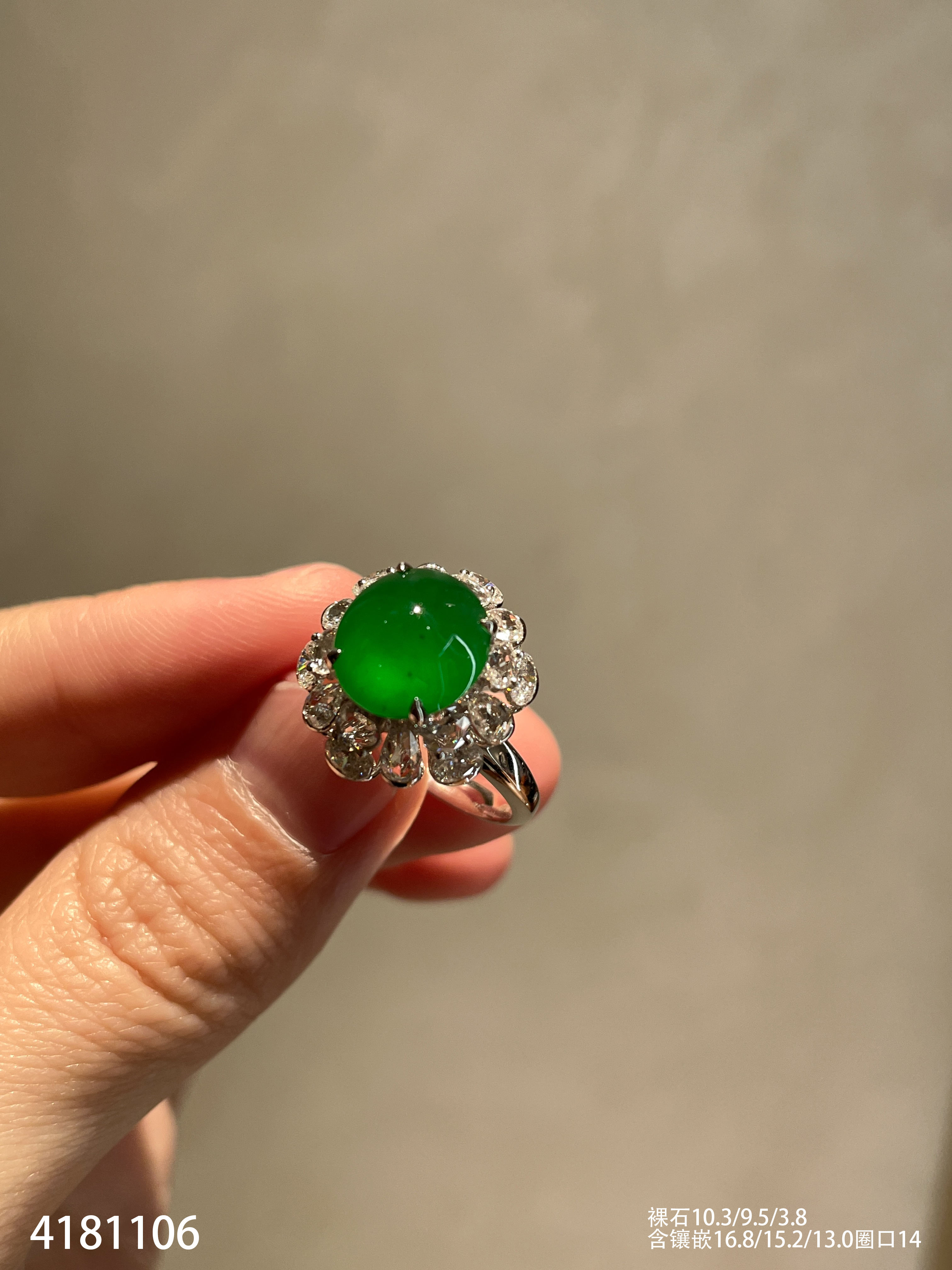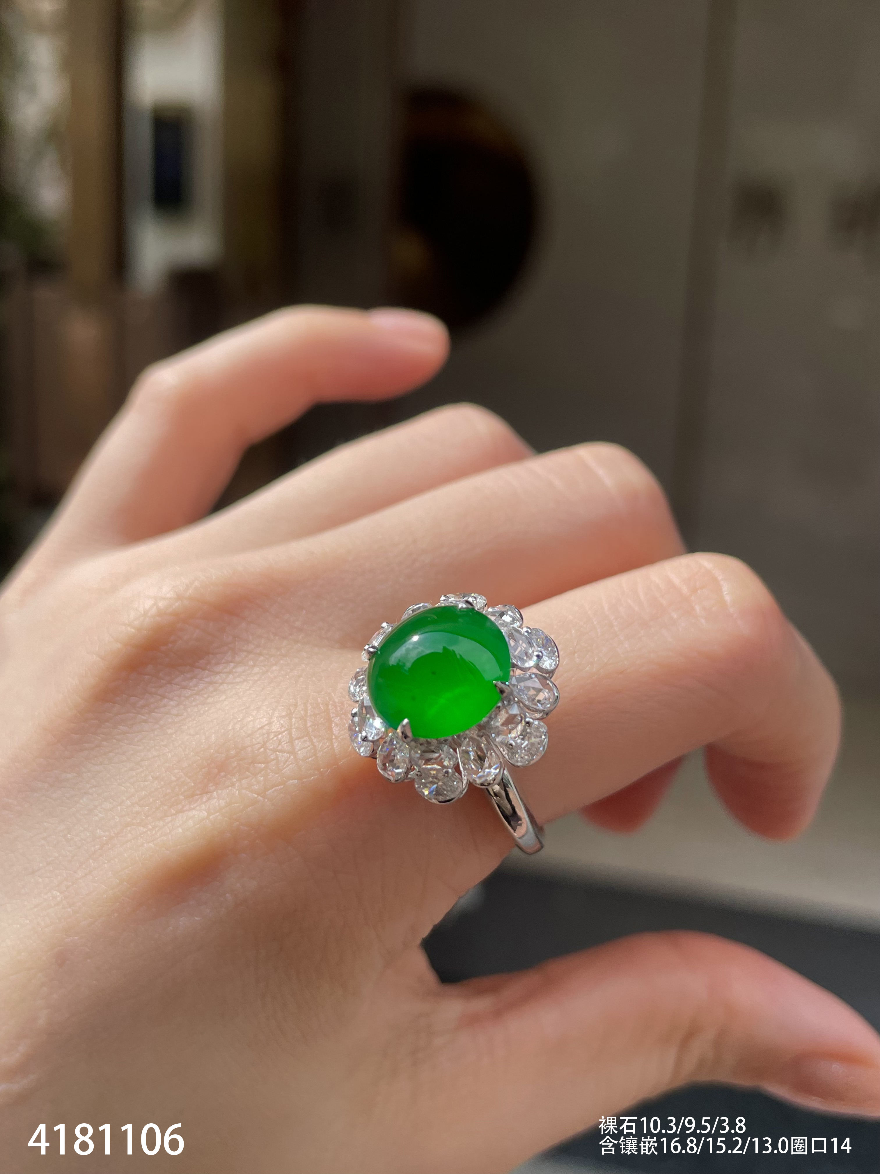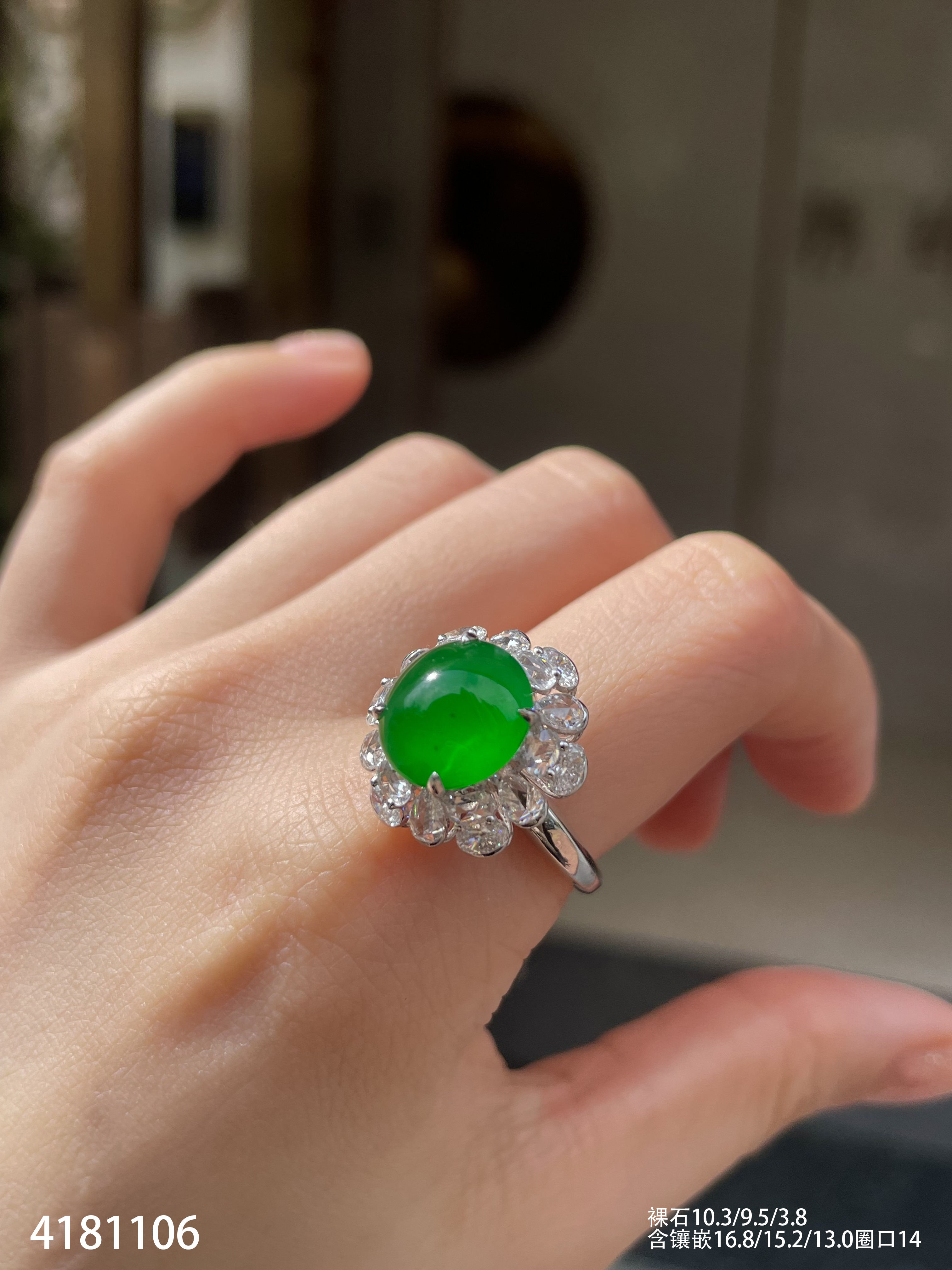 老坑高冰帝王绿蛋面戒指【4181106】具体价格微信咨询