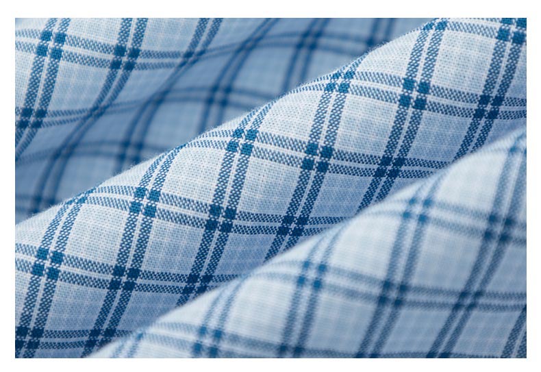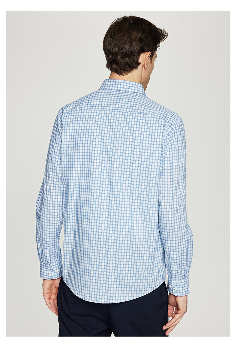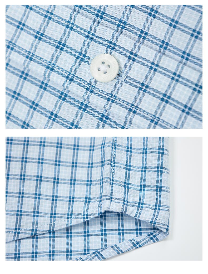 【纯棉】德鲨男装蓝色短袖格子衬衫2026夏新款休闲打底上衣男衬衣