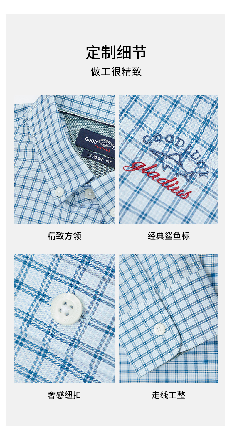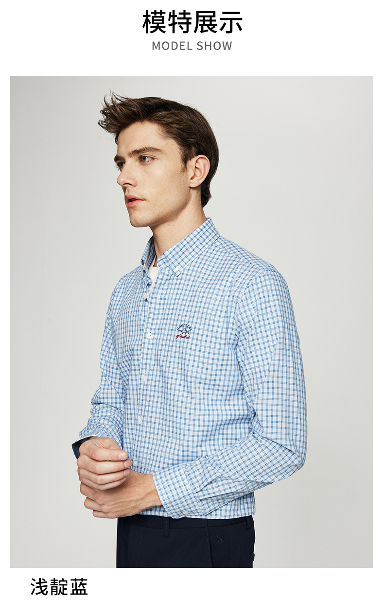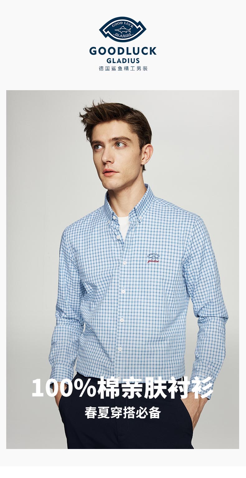【纯棉】德鲨长袖格子衬衫男青年2026春季新款休闲衬衣服