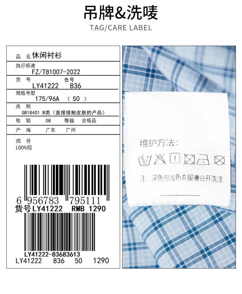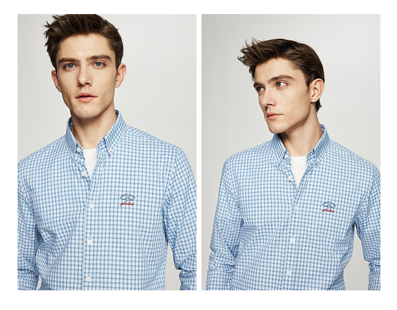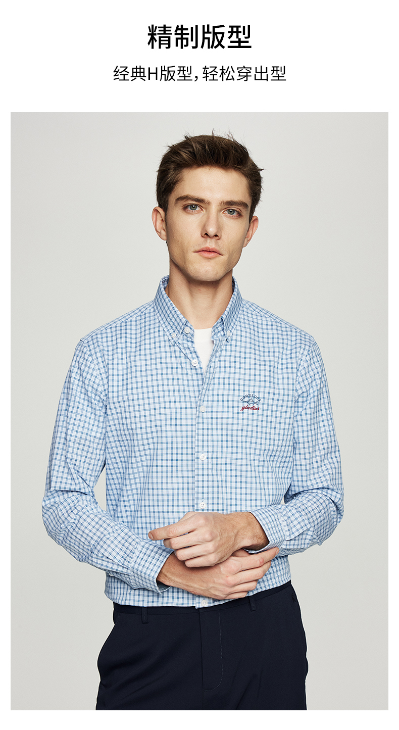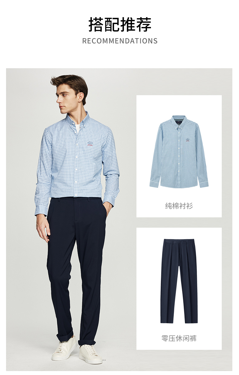 【纯棉】德鲨长袖格子衬衫男青年2026春季新款休闲衬衣服