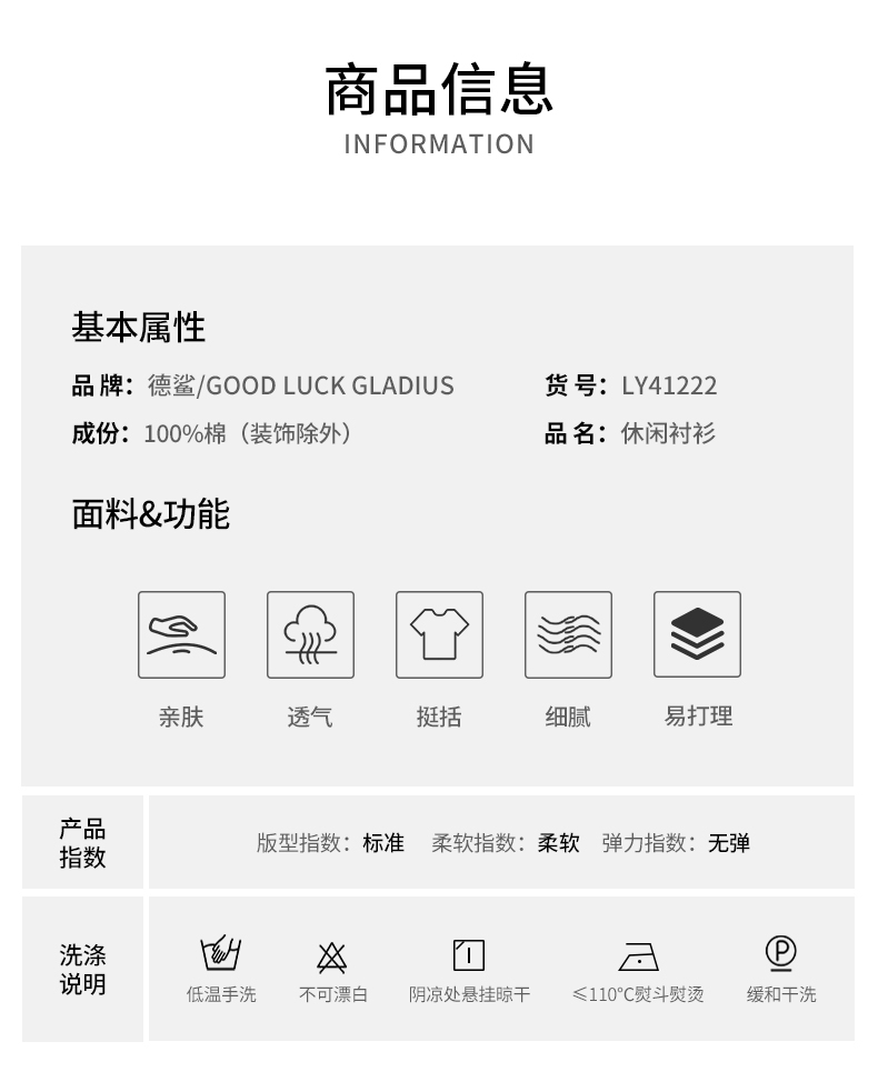 GOOD LUCK GLADIUS品牌由“浙江德鲨服饰有限公司”引进中国市场,经过多年发展,凭借完善的终端形象,规范化的销售管理,迅速赢得消费者的认可,引领国内消费流行,是成功人士首选男装品牌。
