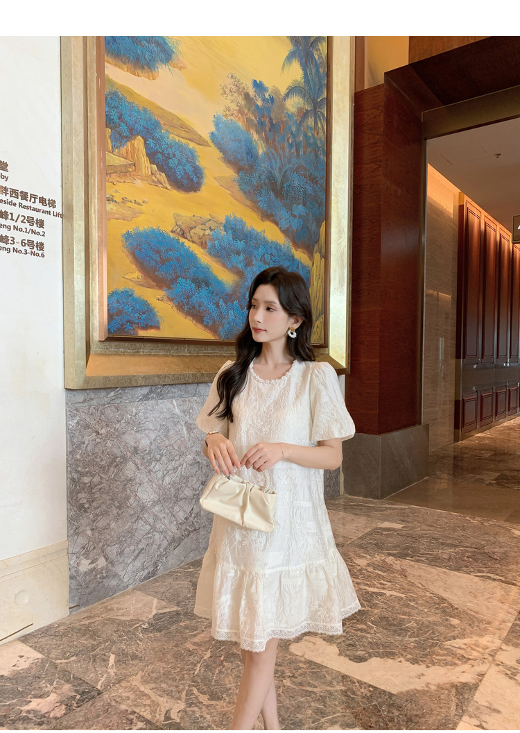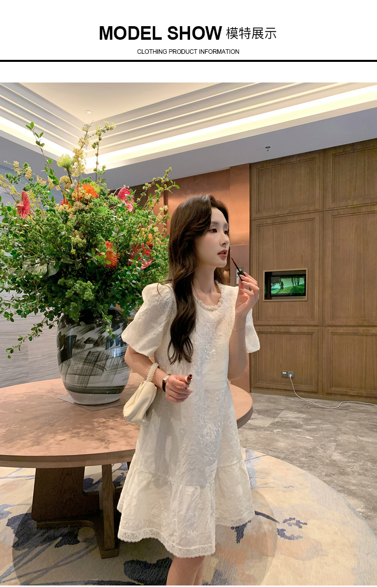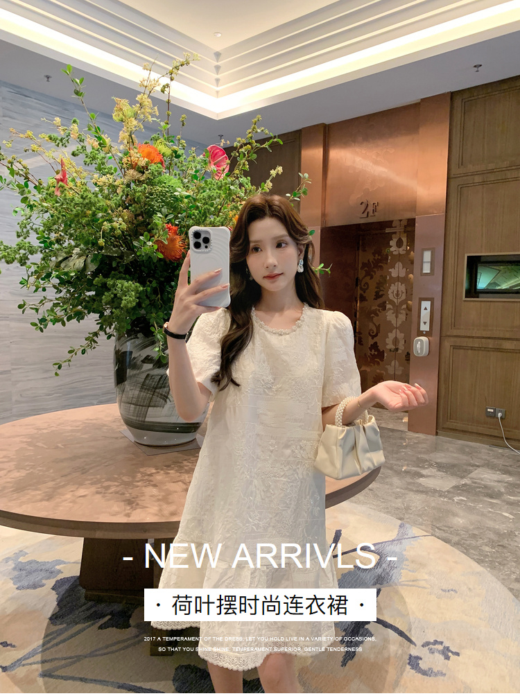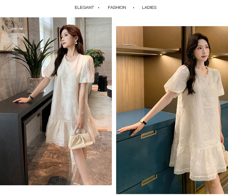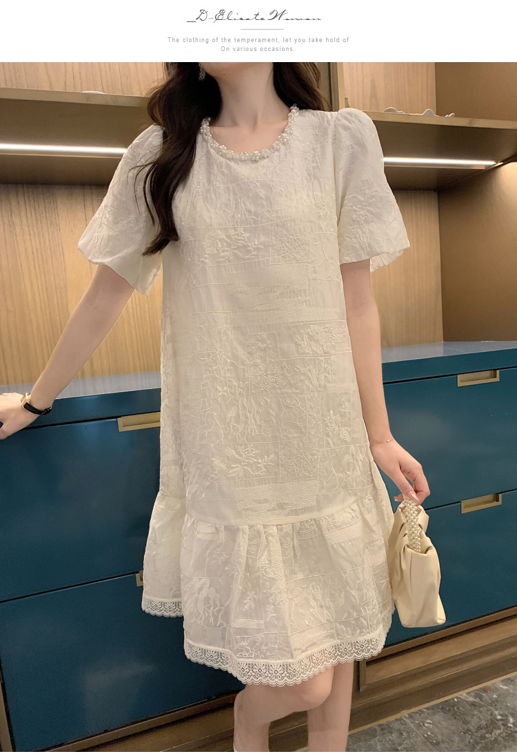 [奢姿轻奢系列]大码女装2025夏季绣花裙子胖妹妹荷叶摆时尚连衣裙8942826465【1】