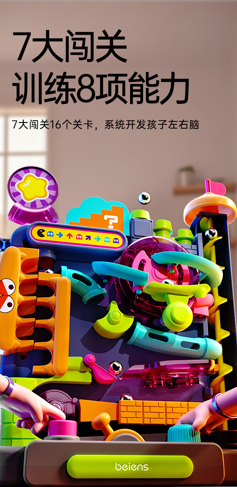 贝恩施儿童闯关疯狂滚珠派对男女孩专注力益智玩具礼物弹珠游戏机