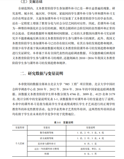 本书采用定量与质性、宏观与微观研究相结合的混合研究技术路线,多视角、多层次、多方法深入地研究中国义务教育课外补习问题。