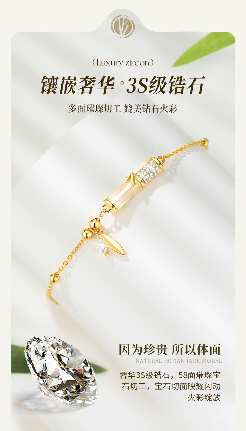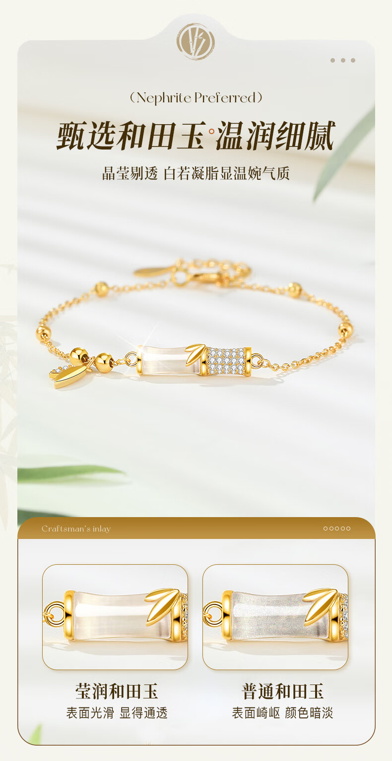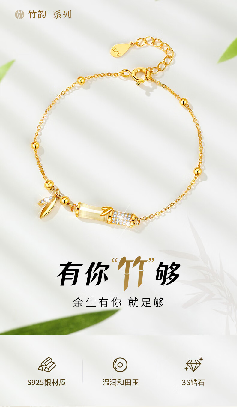 【有你“竹”够】六鑫珠宝 和田玉竹手链 925纯银 520情人节礼物