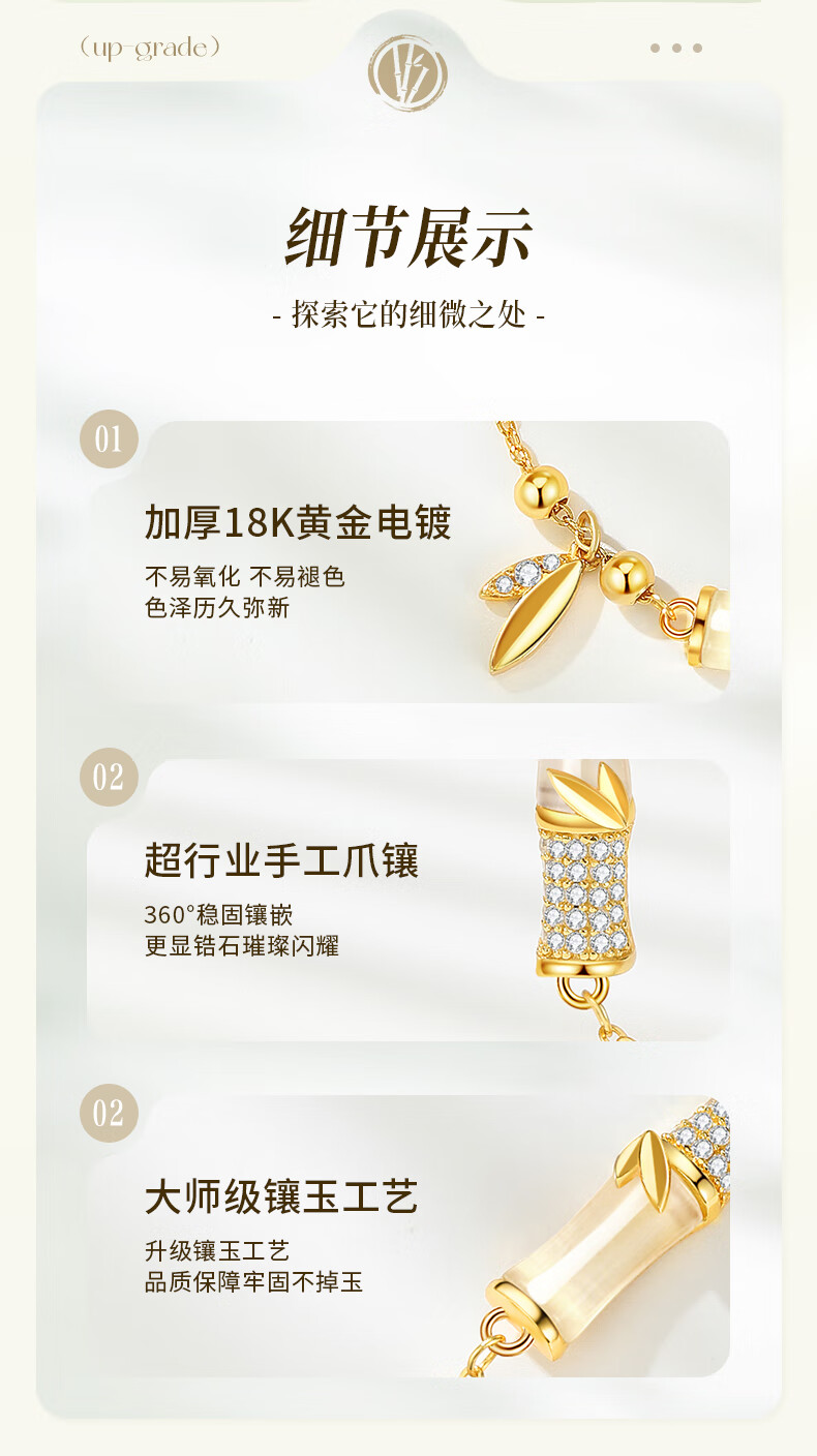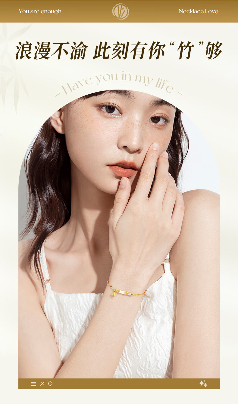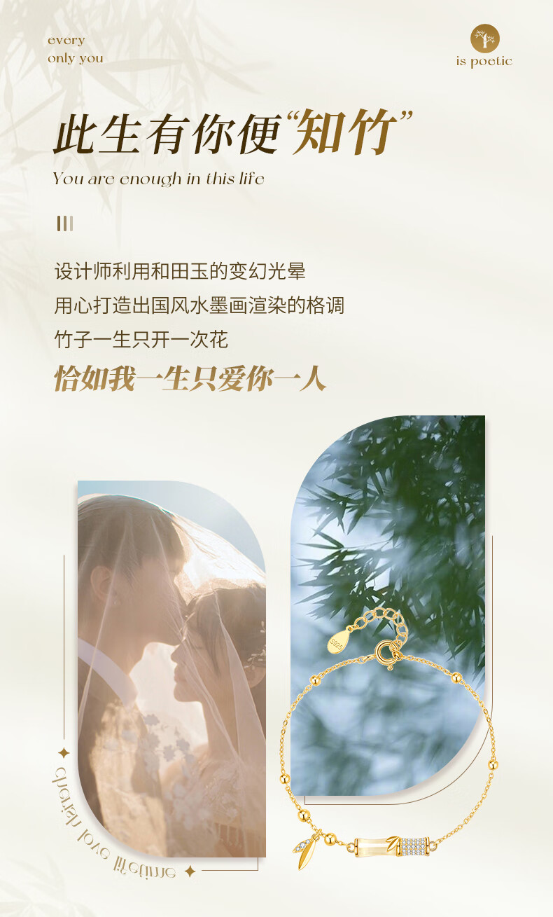 【有你“竹”够】六鑫珠宝 和田玉竹手链 925纯银 520情人节礼物
