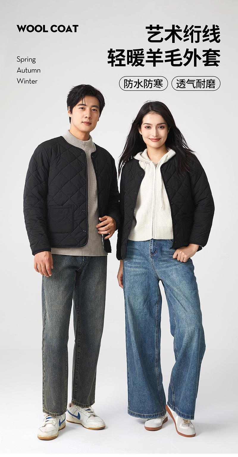 现货直发【DR明星同款情侣外套】羊毛绗缝 长袖一衣多穿时尚叠穿内搭保暖匠心细节圆领包边 双侧口袋