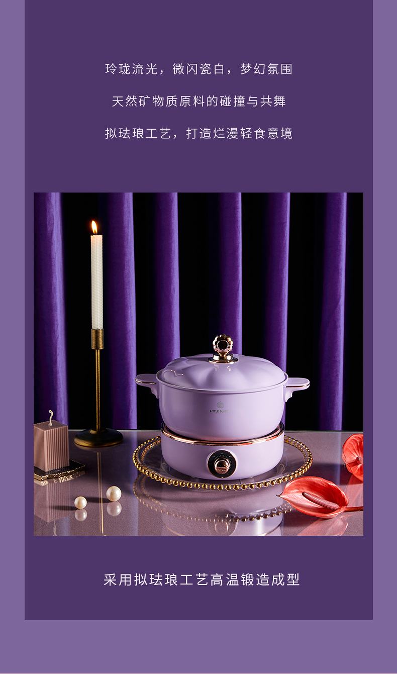 小南瓜多功能电煮锅3L标准款电火锅家用多用途锅 3L大容量分体式电热锅电炒锅 可拆卸易清洁 标准款