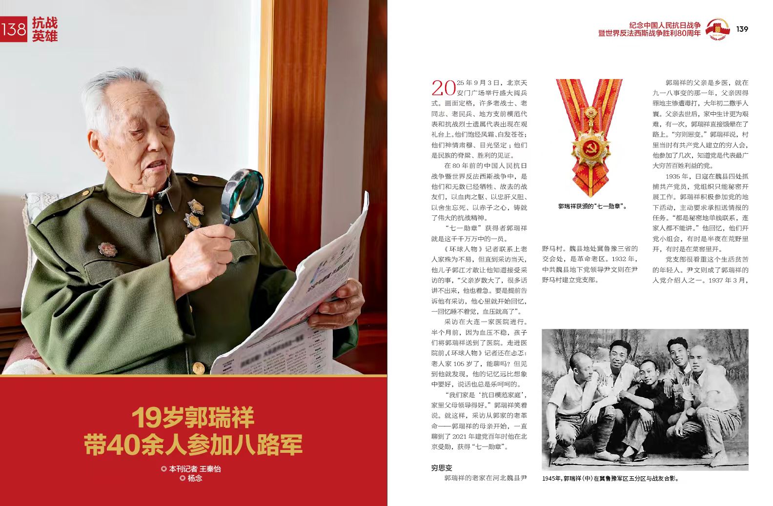 亮点三:36页独家采访,9位平均年龄近百岁的抗战老兵,带你重回战火纷飞的年代。