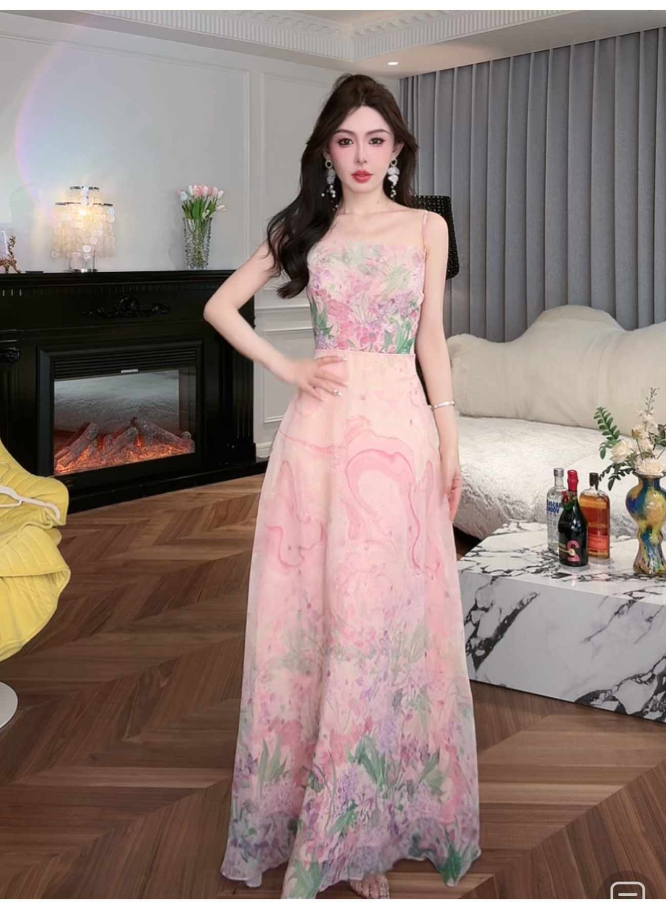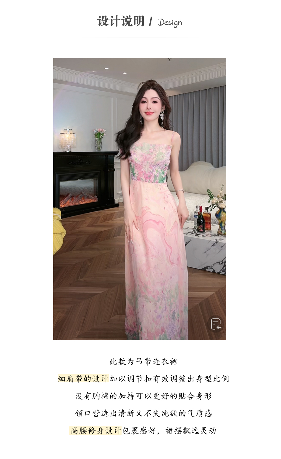 【孤品样衣,不退不换】【鸢尾霞光】法式气质印花100乔其纱吊带女装连衣裙
