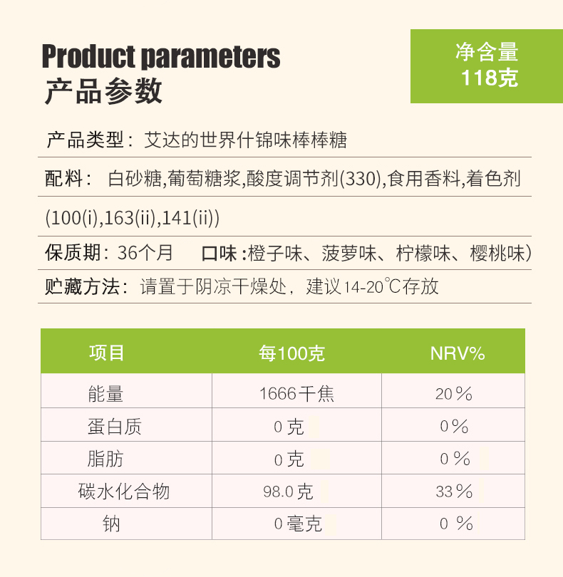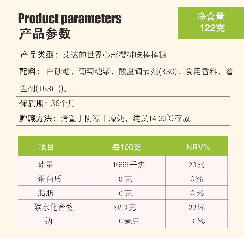艾达的世界什锦味棒棒糖118g/心形樱桃味棒棒糖122g 安心享受每一口甜蜜