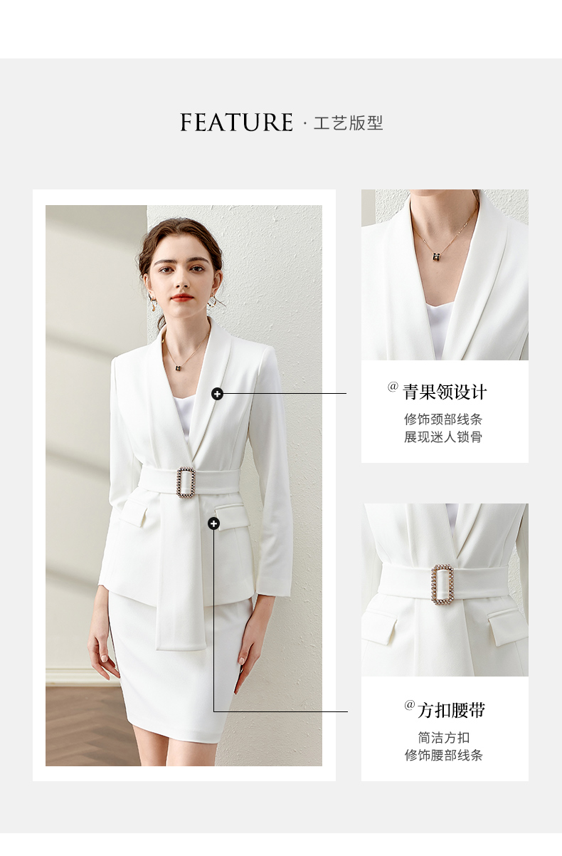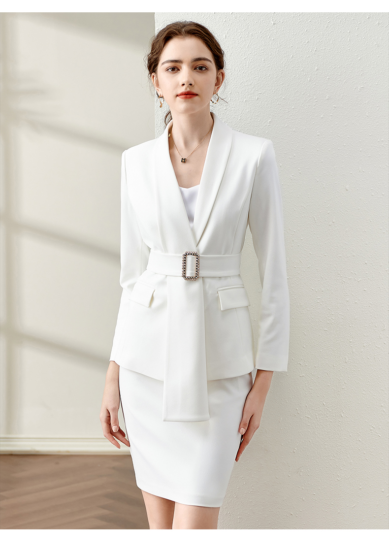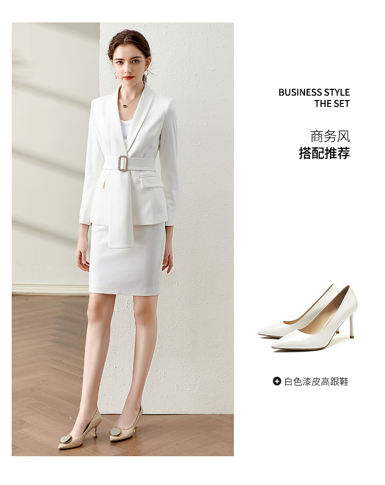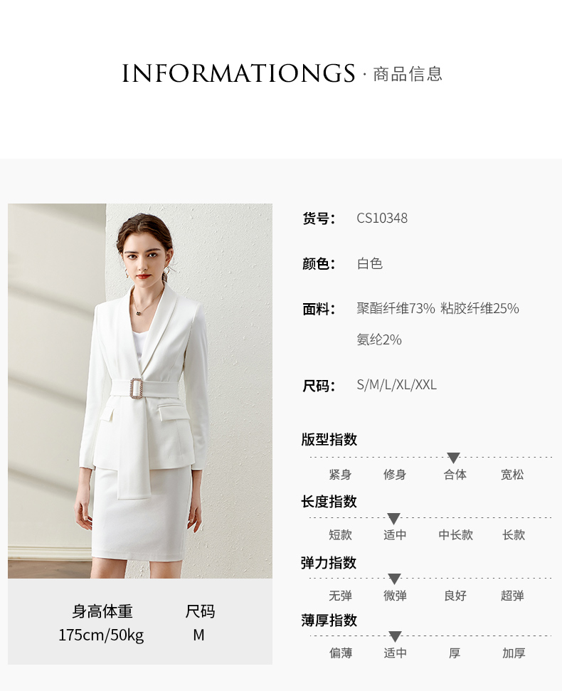 IWY/春季时尚白色名媛小香风绑带显瘦西装半裙职场正装气质职业女套装 CS10348