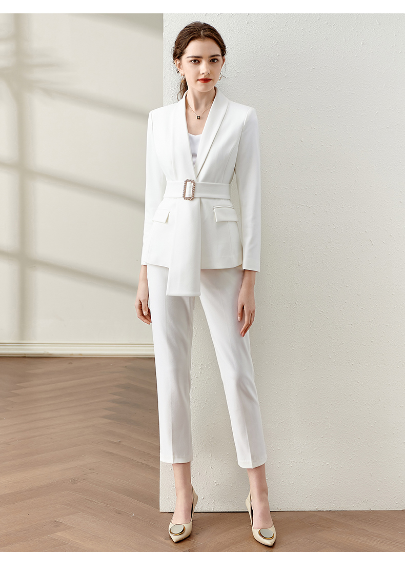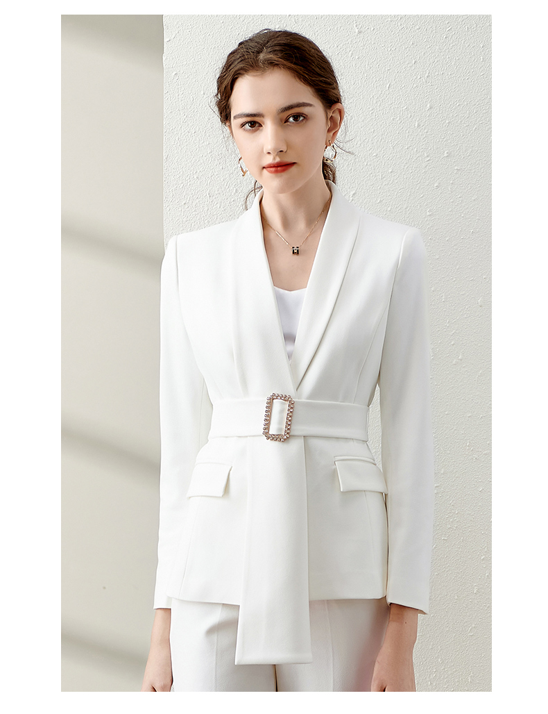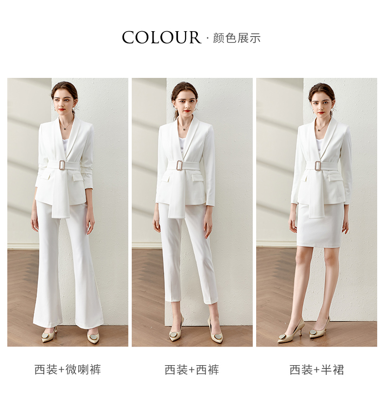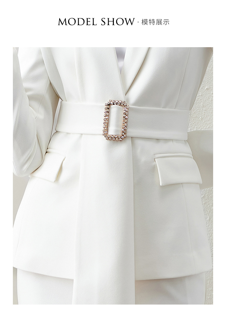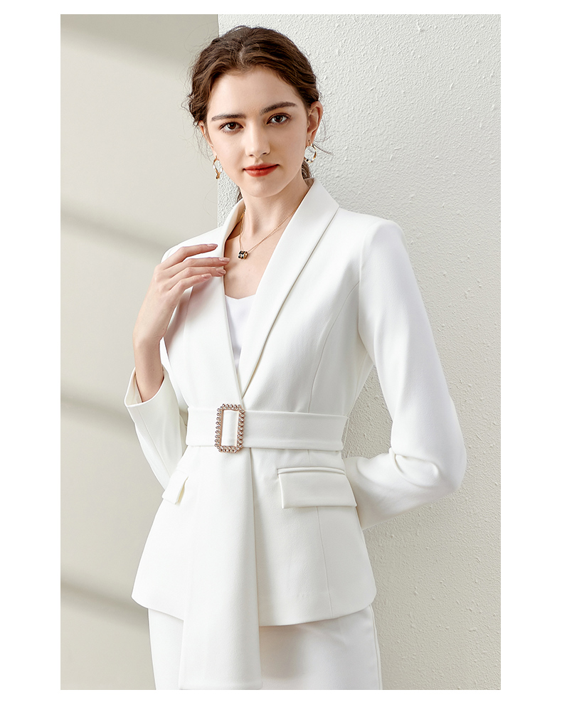 IWY/春季时尚白色名媛小香风绑带显瘦西装半裙职场正装气质职业女套装 CS10348