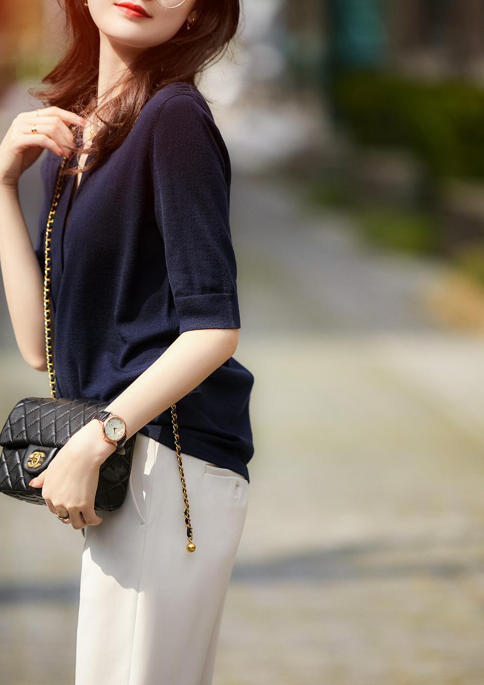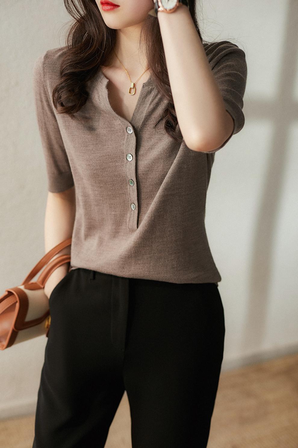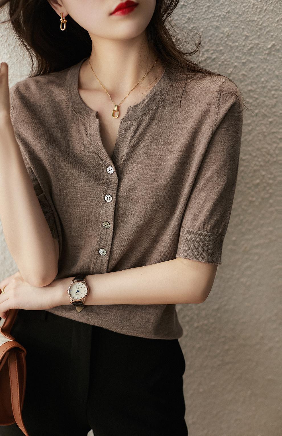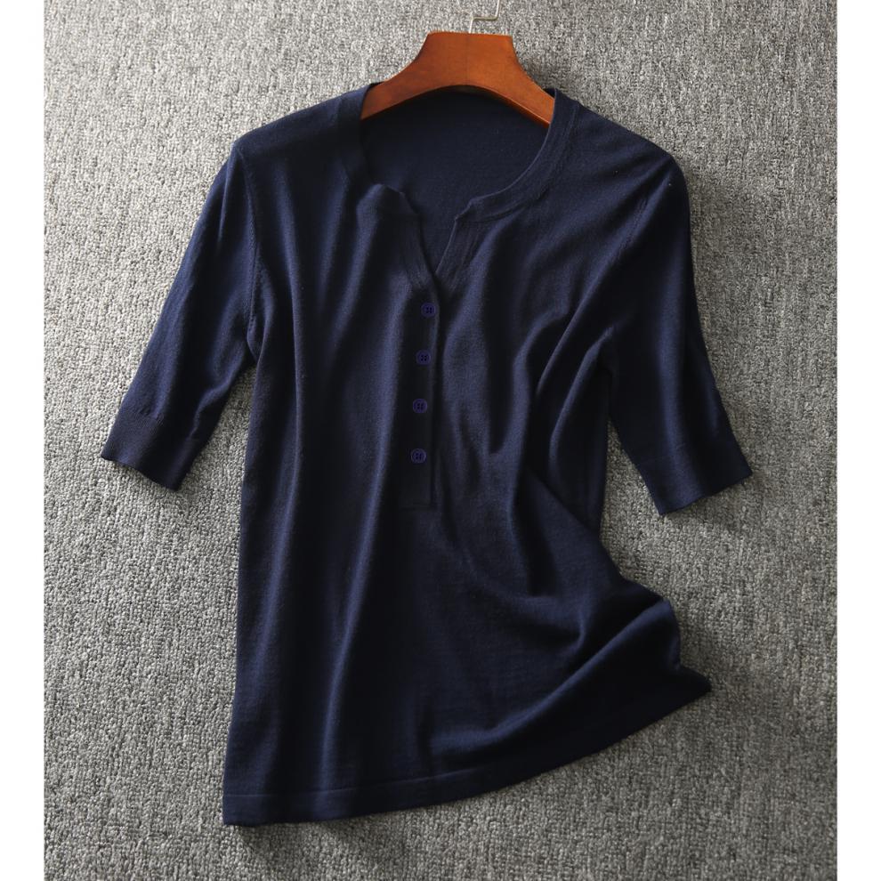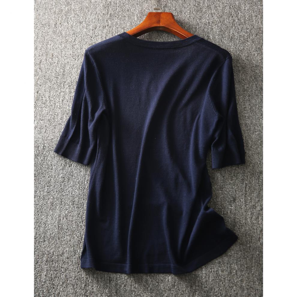 剪标大牌余单法国原单出口精品外贸尾单女装五分袖V领针织上衣女