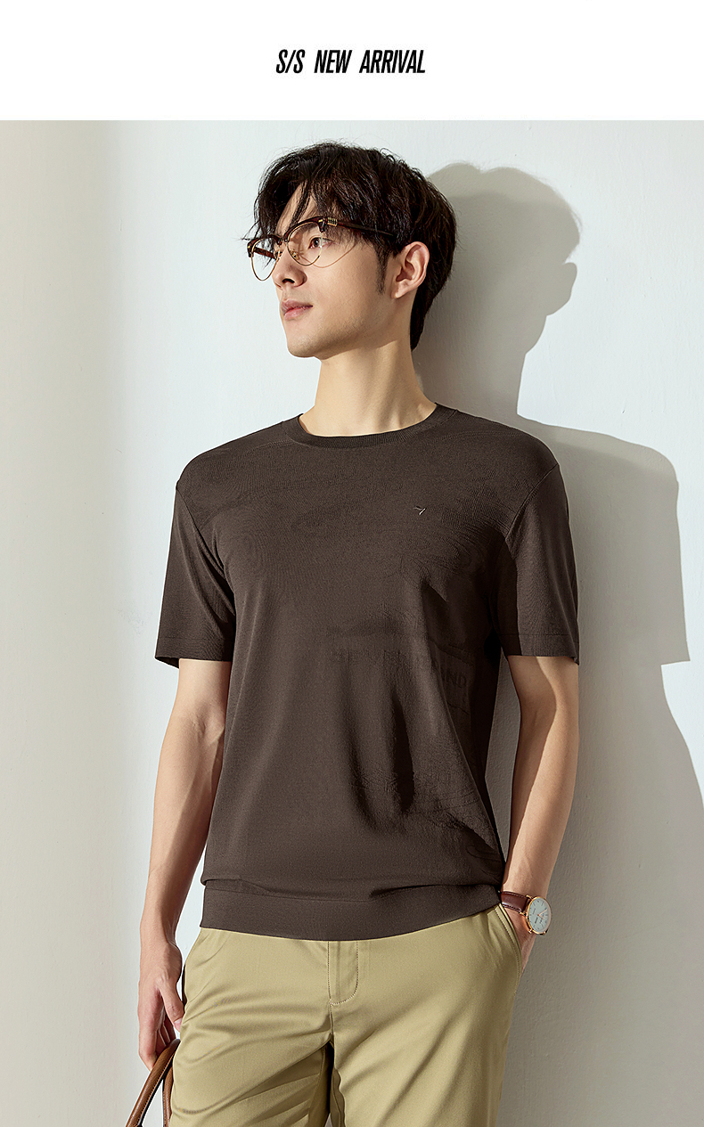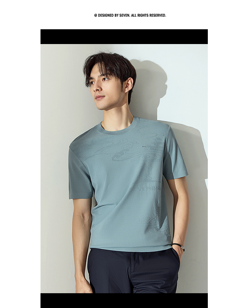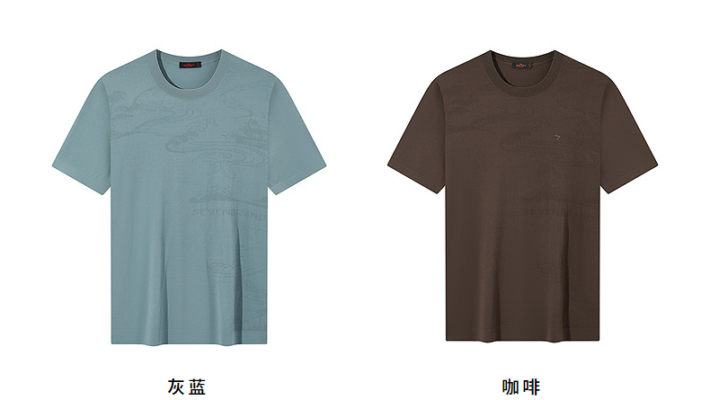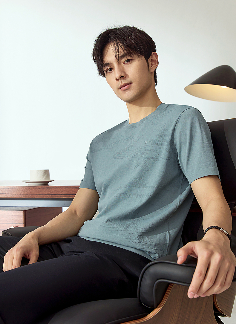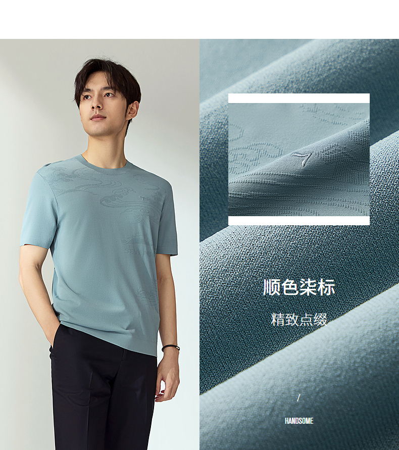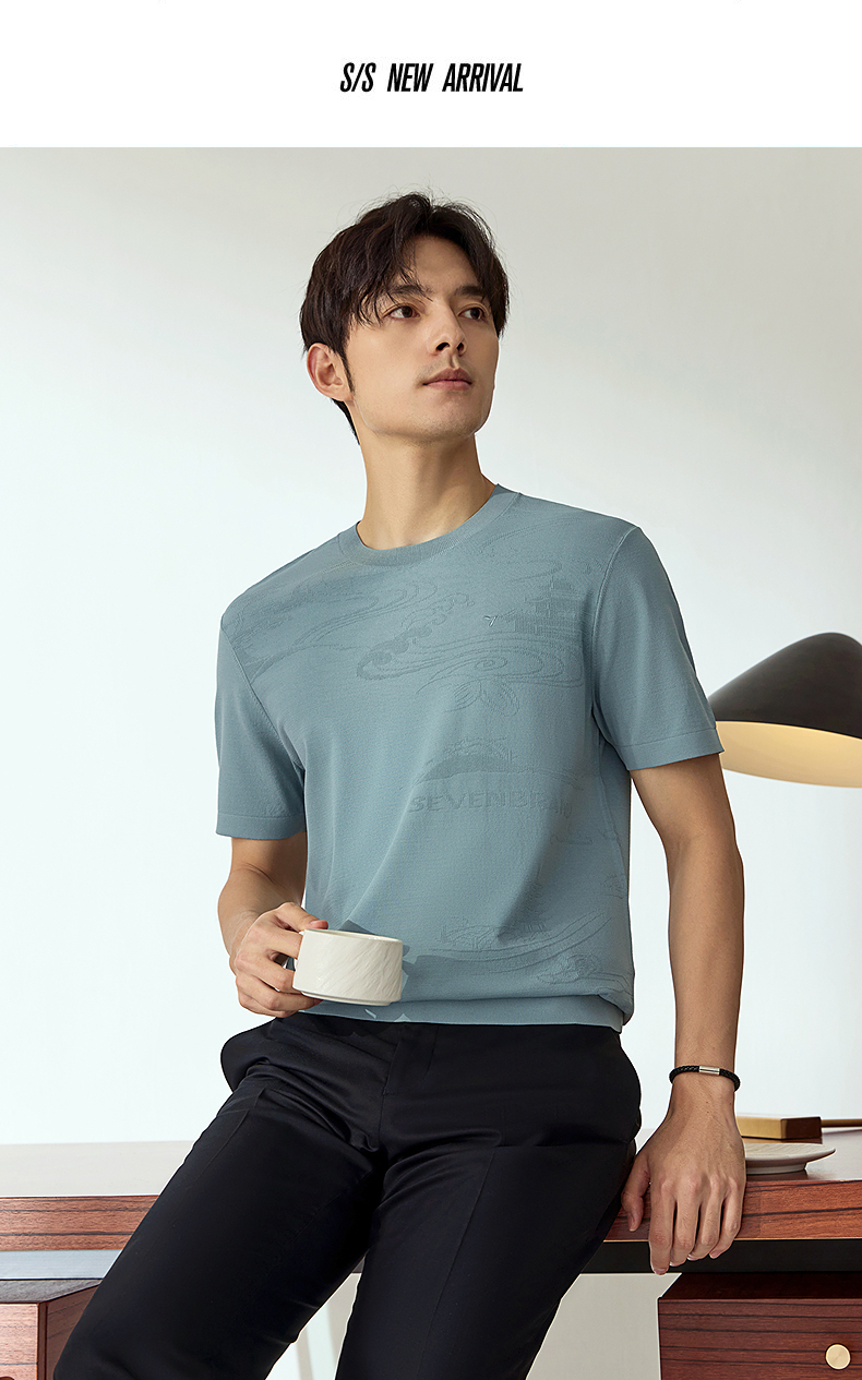 【高端系列】柒牌短袖T恤男2025夏季新款伊力特提花男士圆领上衣128T70440
