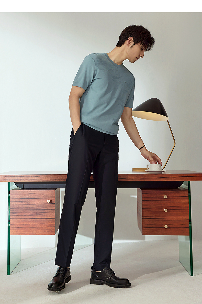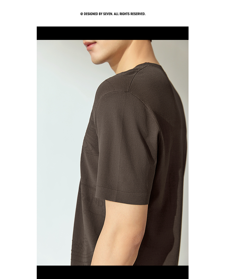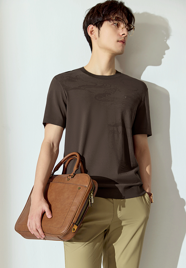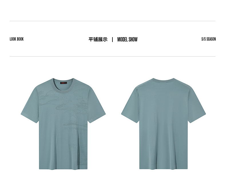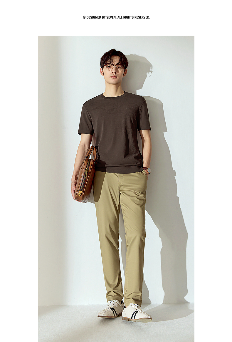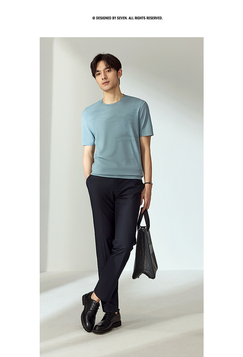 【高端系列】柒牌短袖T恤男2025夏季新款伊力特提花男士圆领上衣128T70440