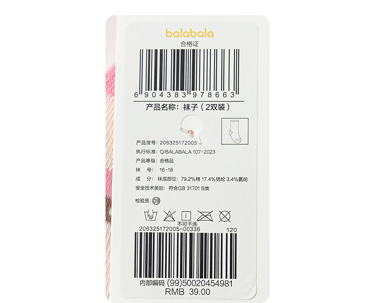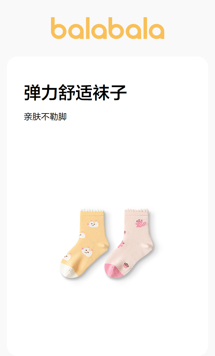 巴拉巴拉女童袜子秋季新品儿童短袜萌趣不勒脚两双装