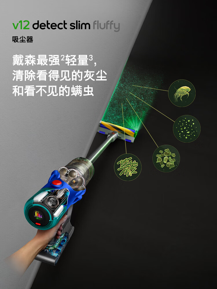 戴森【2024年新款】V12 Detect Slim Fluffy轻量高端吸尘器 光学探测微尘 140AW强劲吸力 蓝色