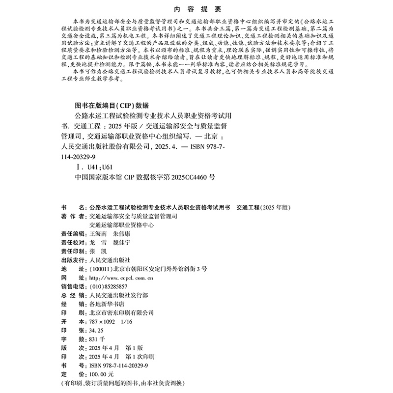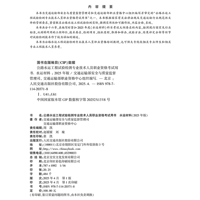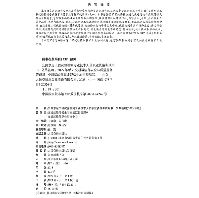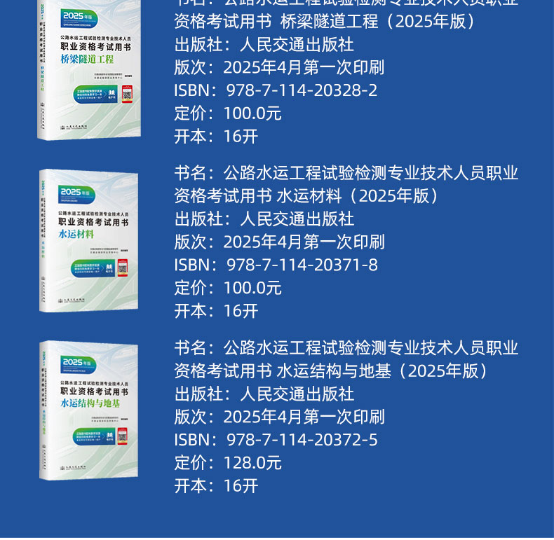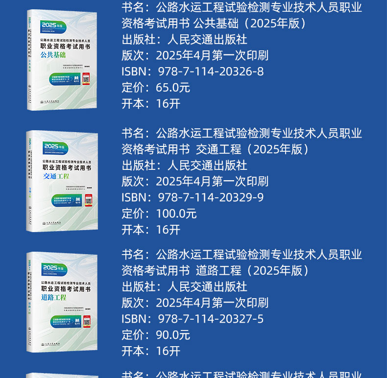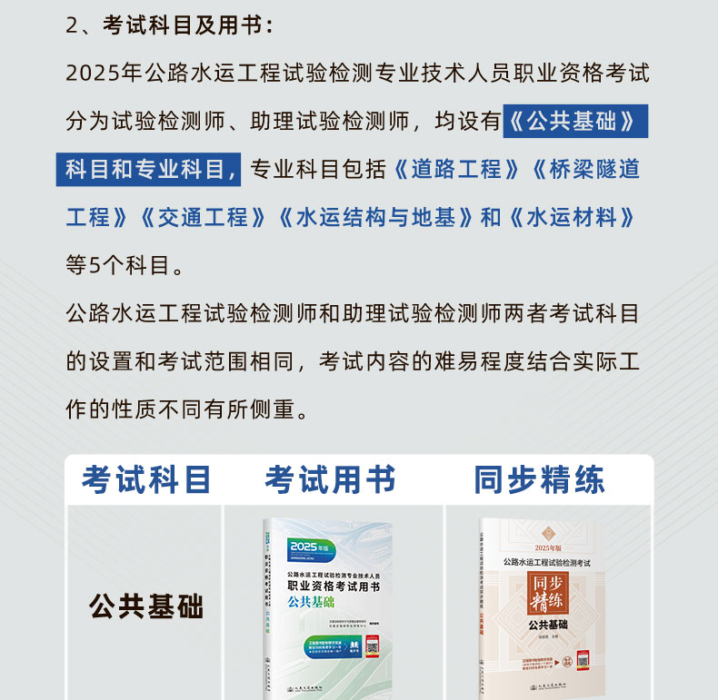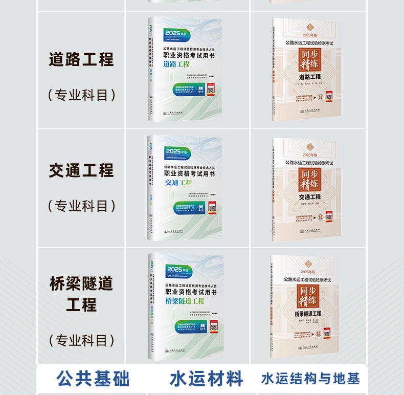2025公路水运工程试验检测师员专业技术人员职业资格考试用书 公共基础 道路工程 桥梁隧道 交通工程 水运材料 水运结构与地基