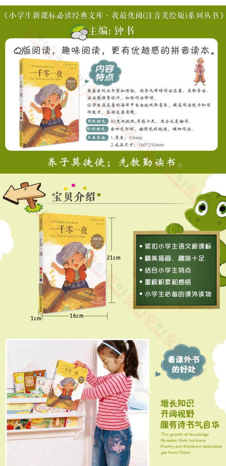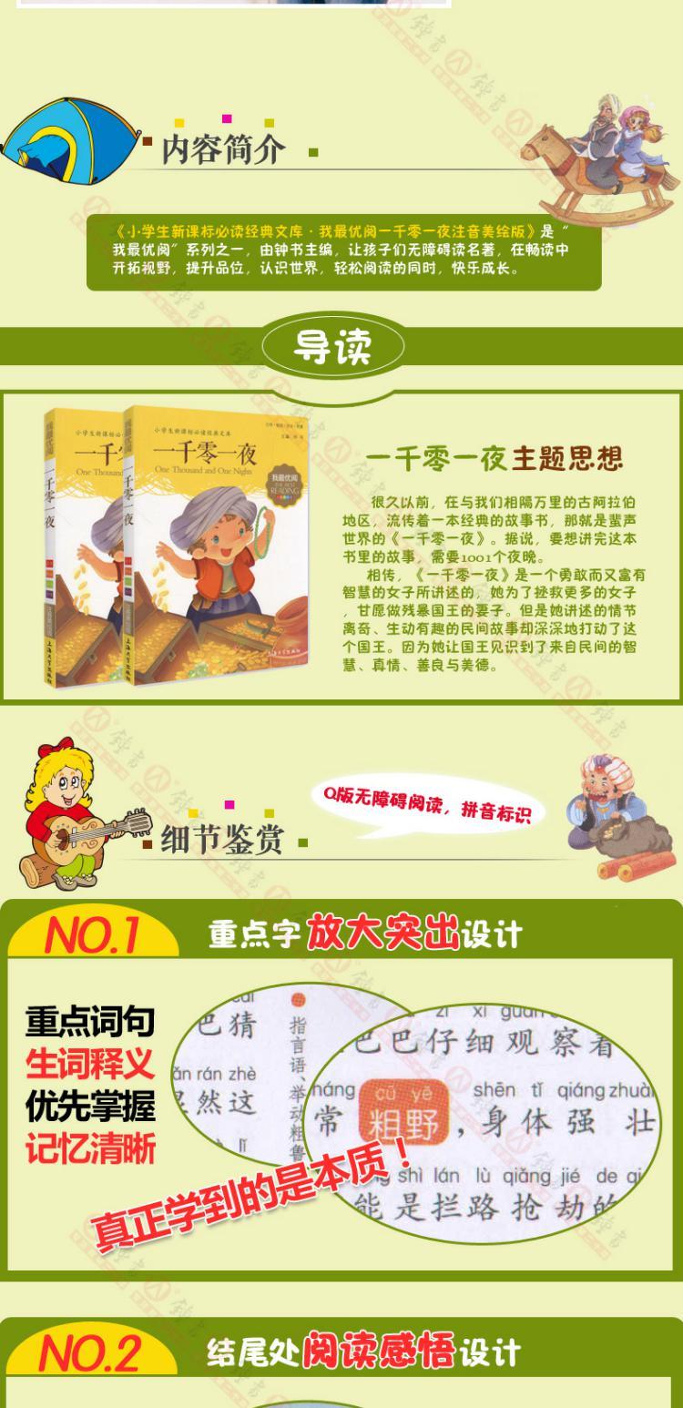 1-3年级适用 注音美绘版-一千零一夜 钟书正版少儿读物我优阅系列拼音彩图版一千零一夜 儿童文学课外读物小学生作文阅读写作能力