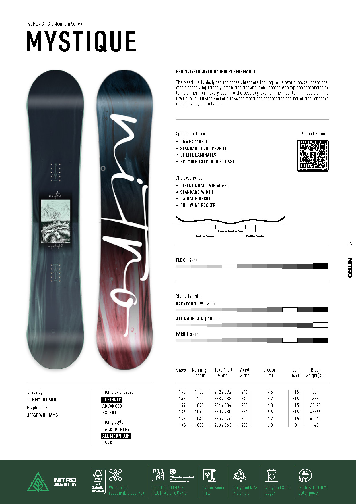 Nitro 23-24 【MYSTIQUE】 女款雪板 ALL MOUNTAIN 138 142 146 149