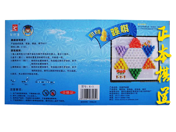 底部镶嵌磁石,棋子可以吸附棋面,不易颠倒移位,跳棋是最简单的三种入门棋之一,也是小朋友们玩的最多的棋之一。 整体:棋盘为折叠设计,棋子置于棋盘里面,便于收纳并不易丢失棋子,整体通过专利设计较传统棋更加新颖、实用、便携、益智,不管在家里、单位里、学校里、旅途中、车上还是郊游中都极其适用,而且老少兼宜,最重要的是产品性价比极其高,高贵不贵。