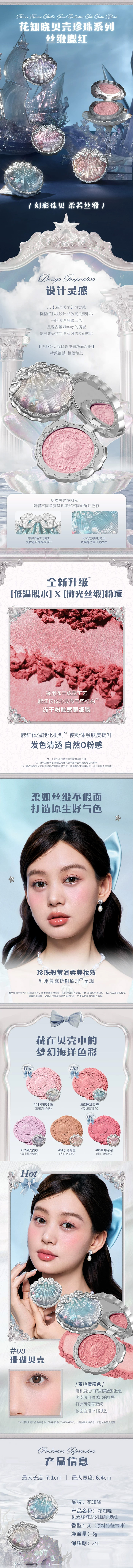 花知晓贝壳珍珠系列丝缎腮红03珊瑚贝壳