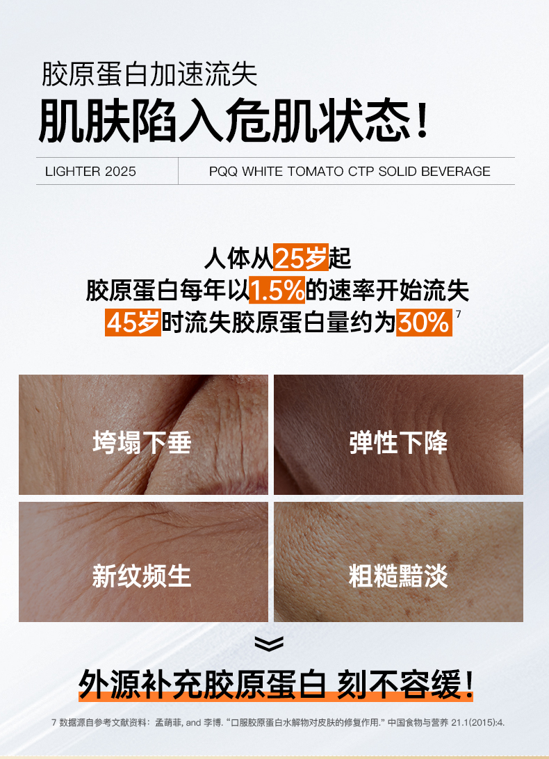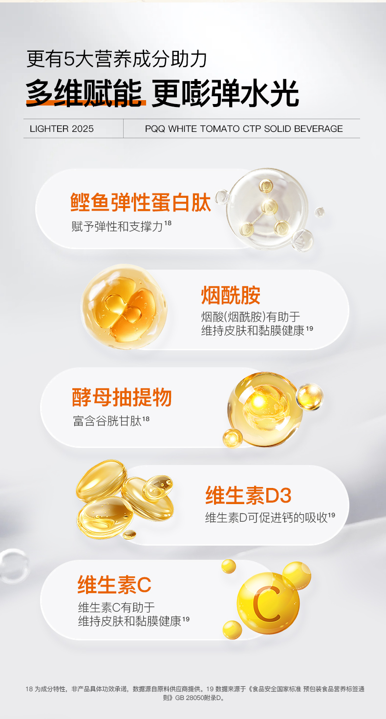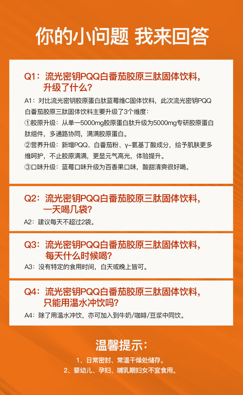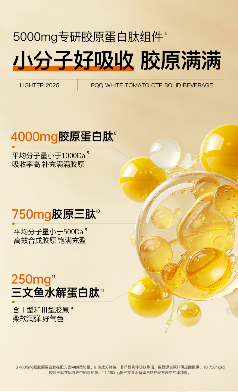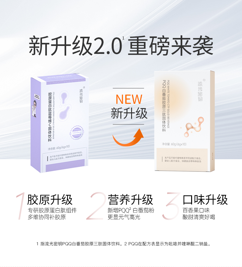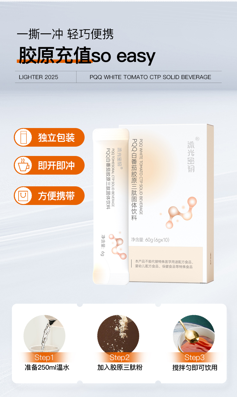 ❗️【38焕新】流光密钥PQQ白番茄胶原三肽固体饮料胶原蛋白肽小分子30条/盒180g