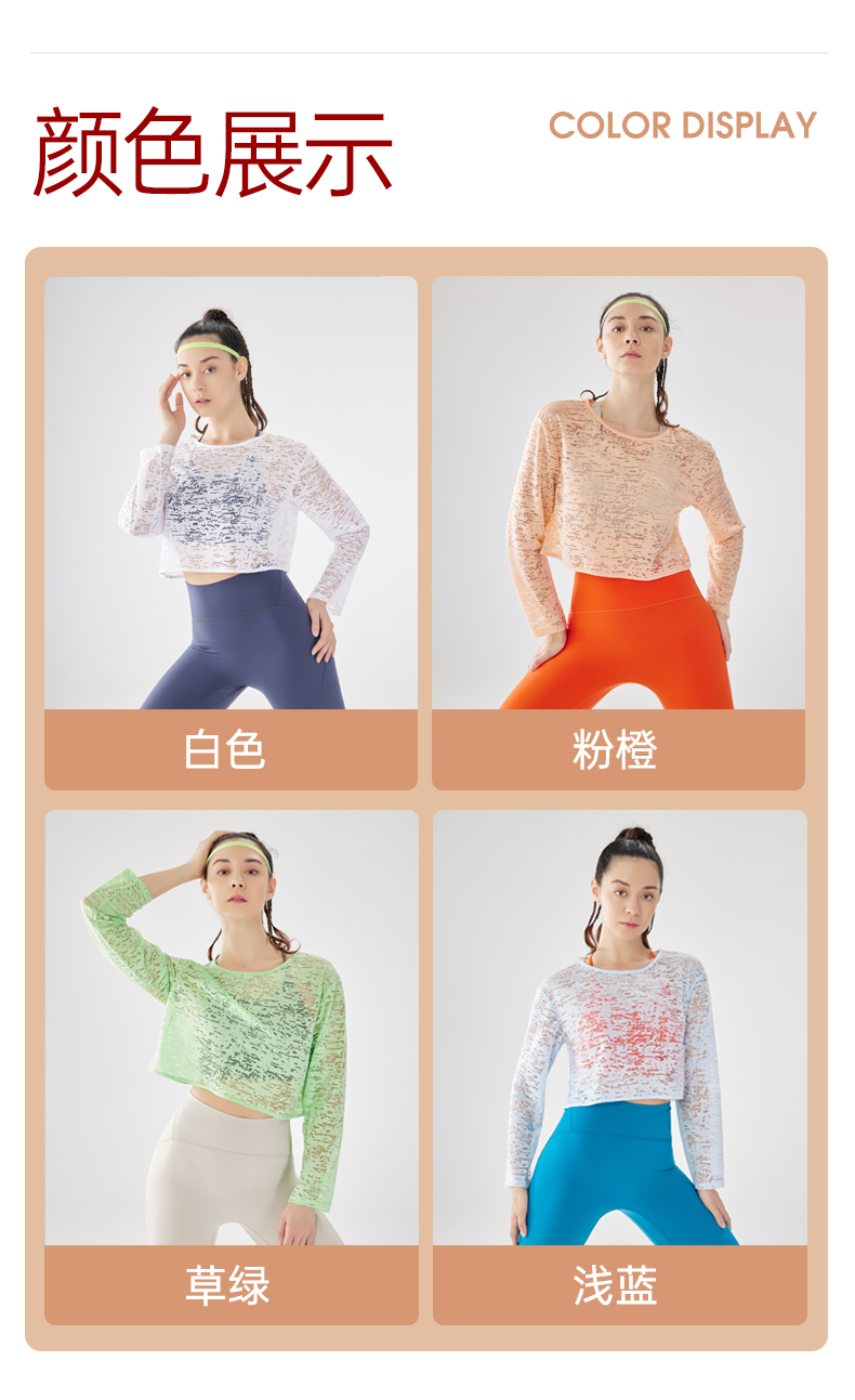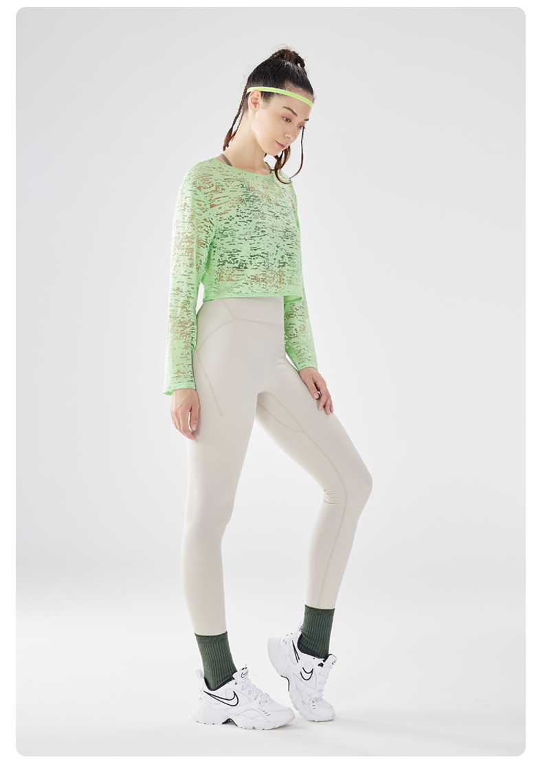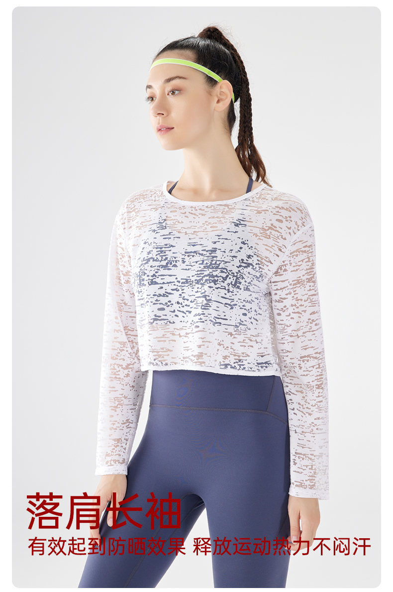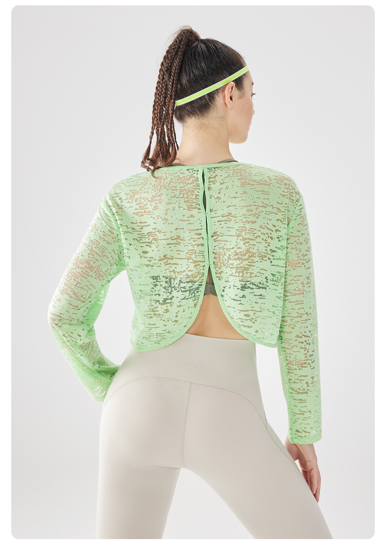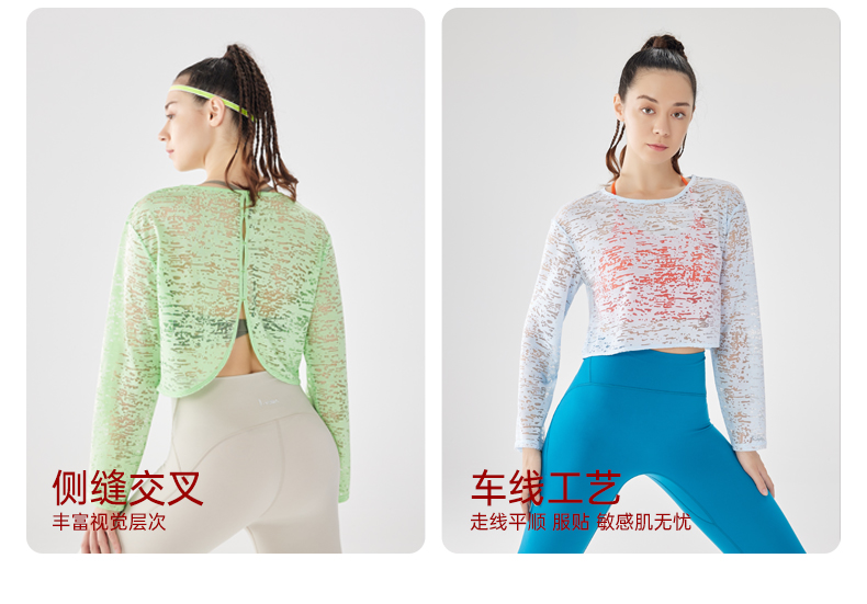 IYOGA瑜伽长袖罩衫衣长及腰甄选网纱质感分明轻薄透气时尚百搭速干T054
