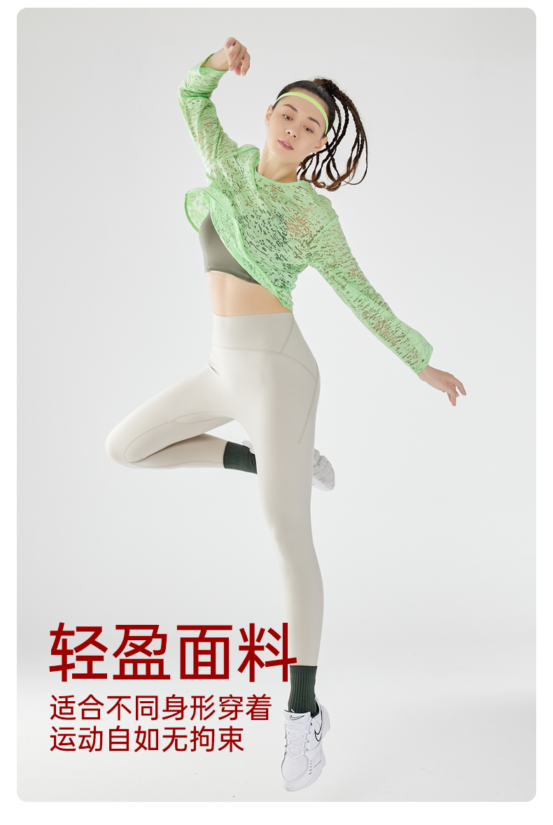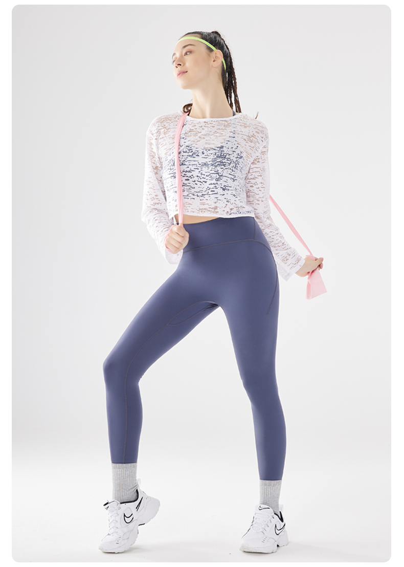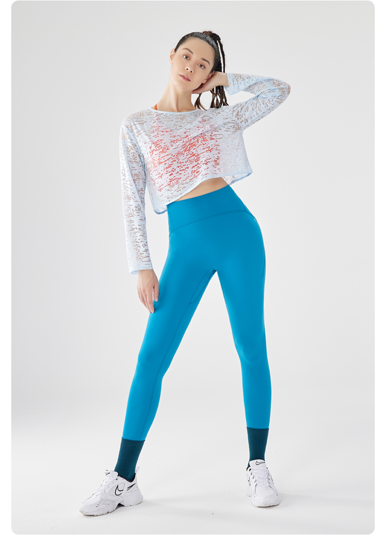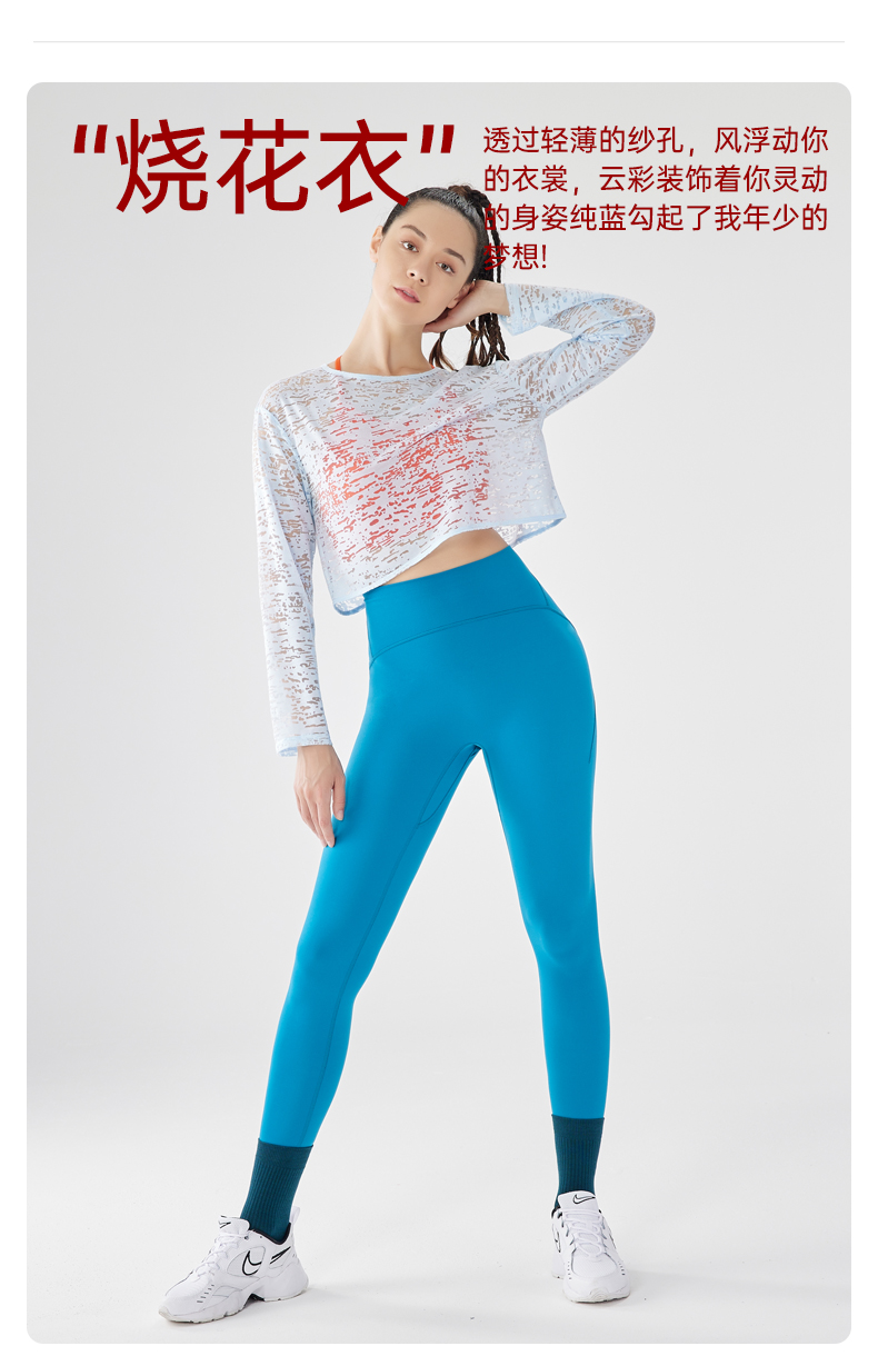 IYOGA瑜伽长袖罩衫衣长及腰甄选网纱质感分明轻薄透气时尚百搭速干T054