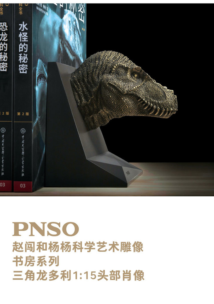 PNSO霸王龙三角龙头部肖像赵闯和杨杨科学艺术雕像书房系列