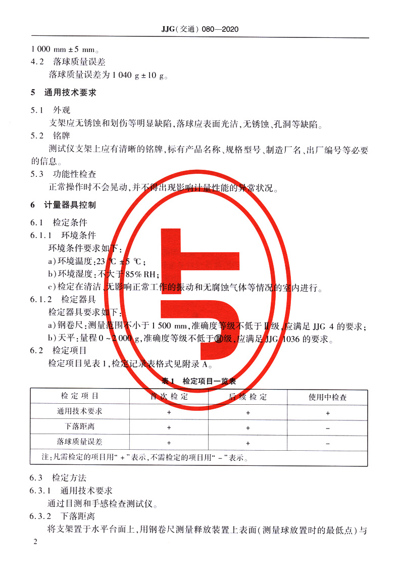 突起路标耐冲击性能测试仪(JJG(交通) 080-2020)