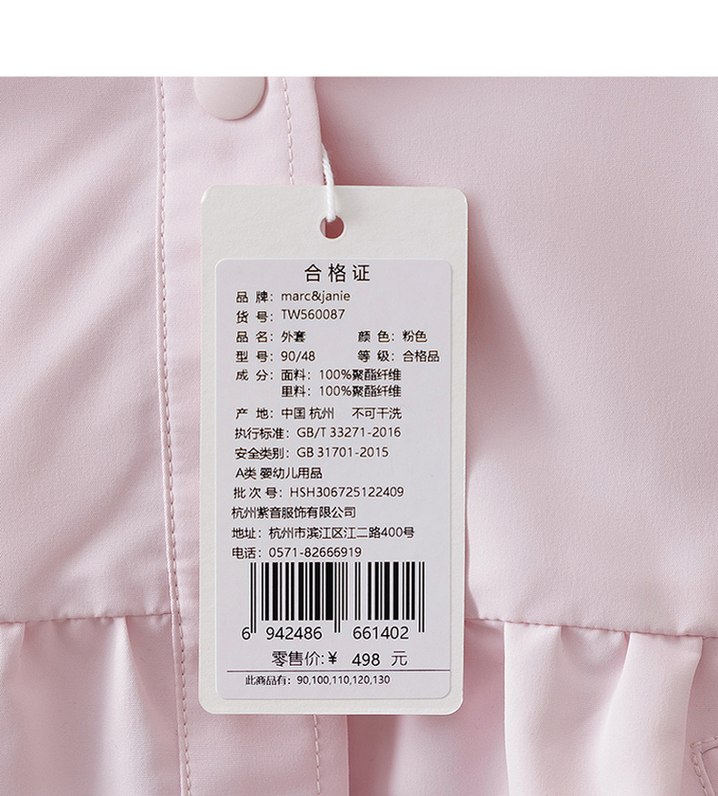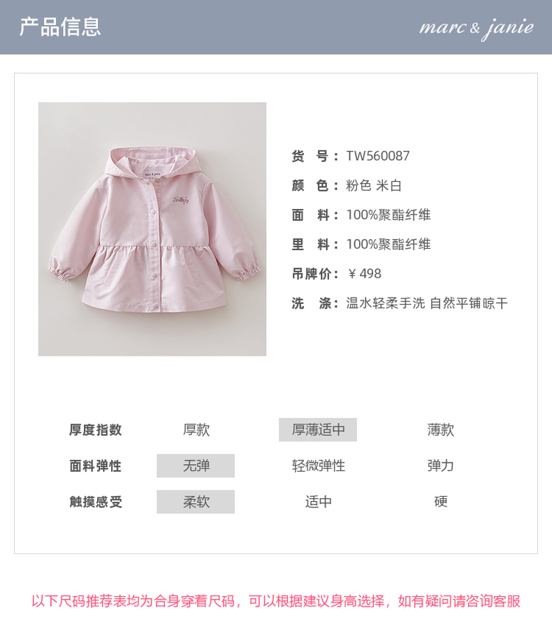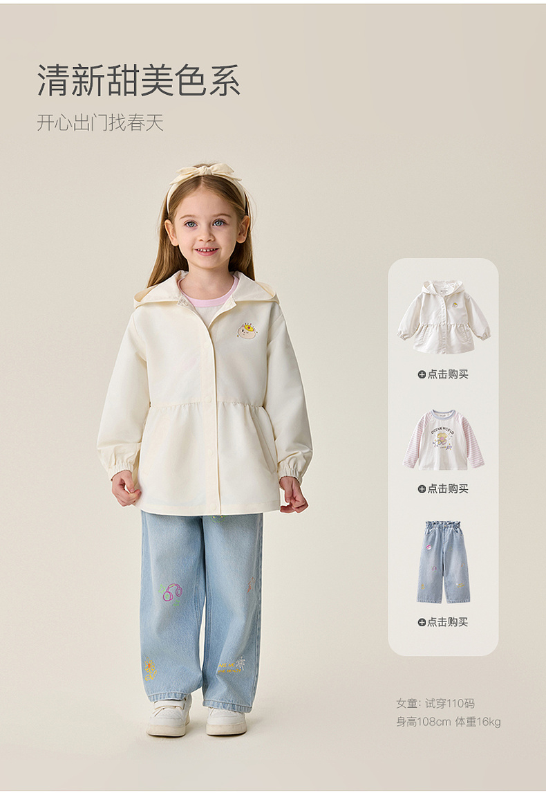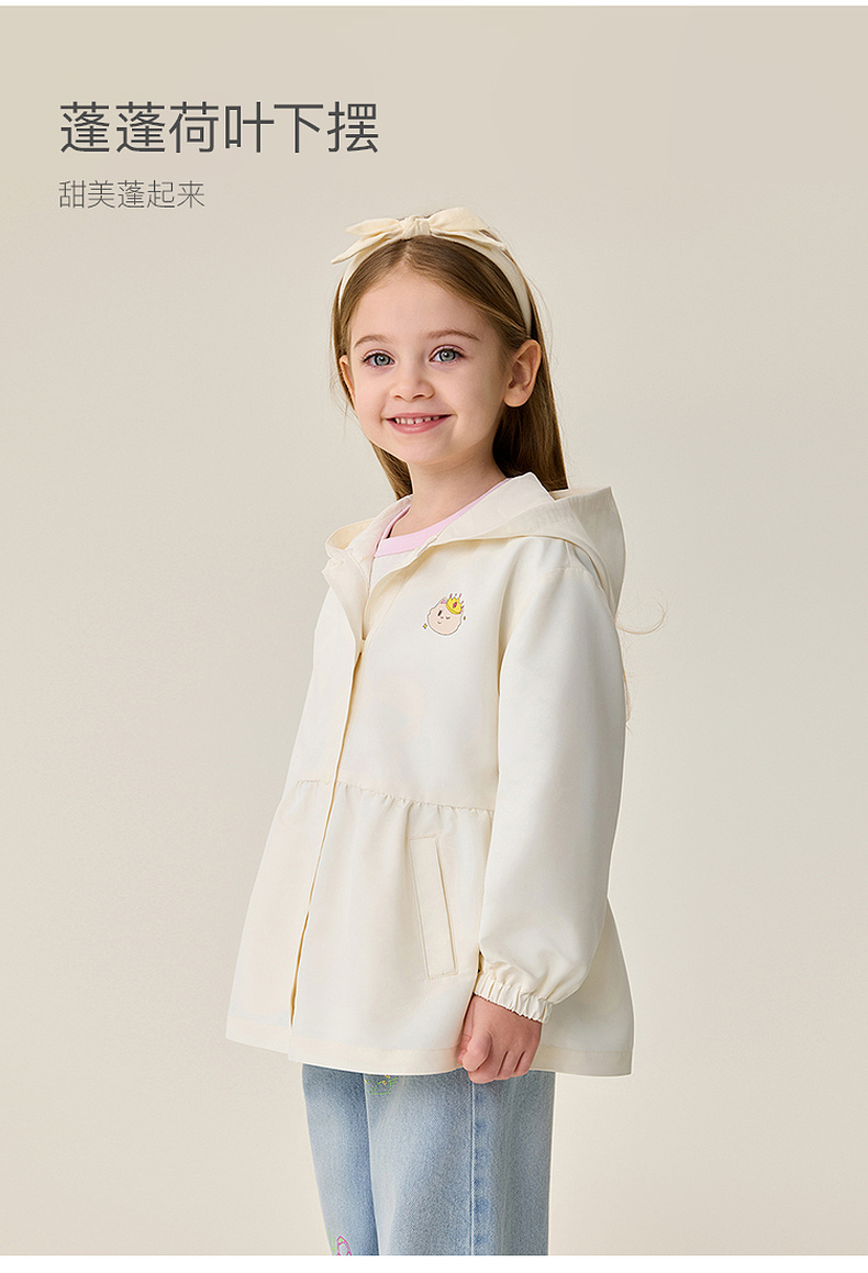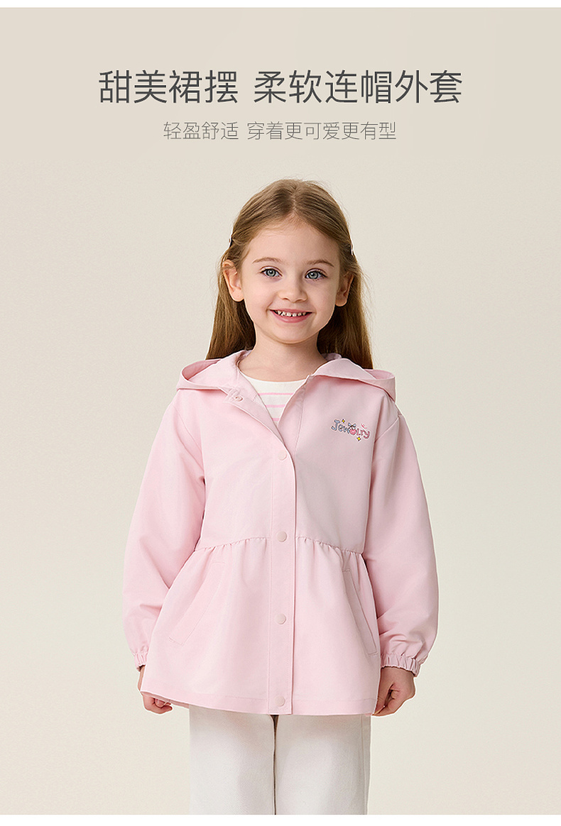 [无氟防泼水]马克珍妮甜美裙摆女童柔软连帽外套2026年春装新款560087